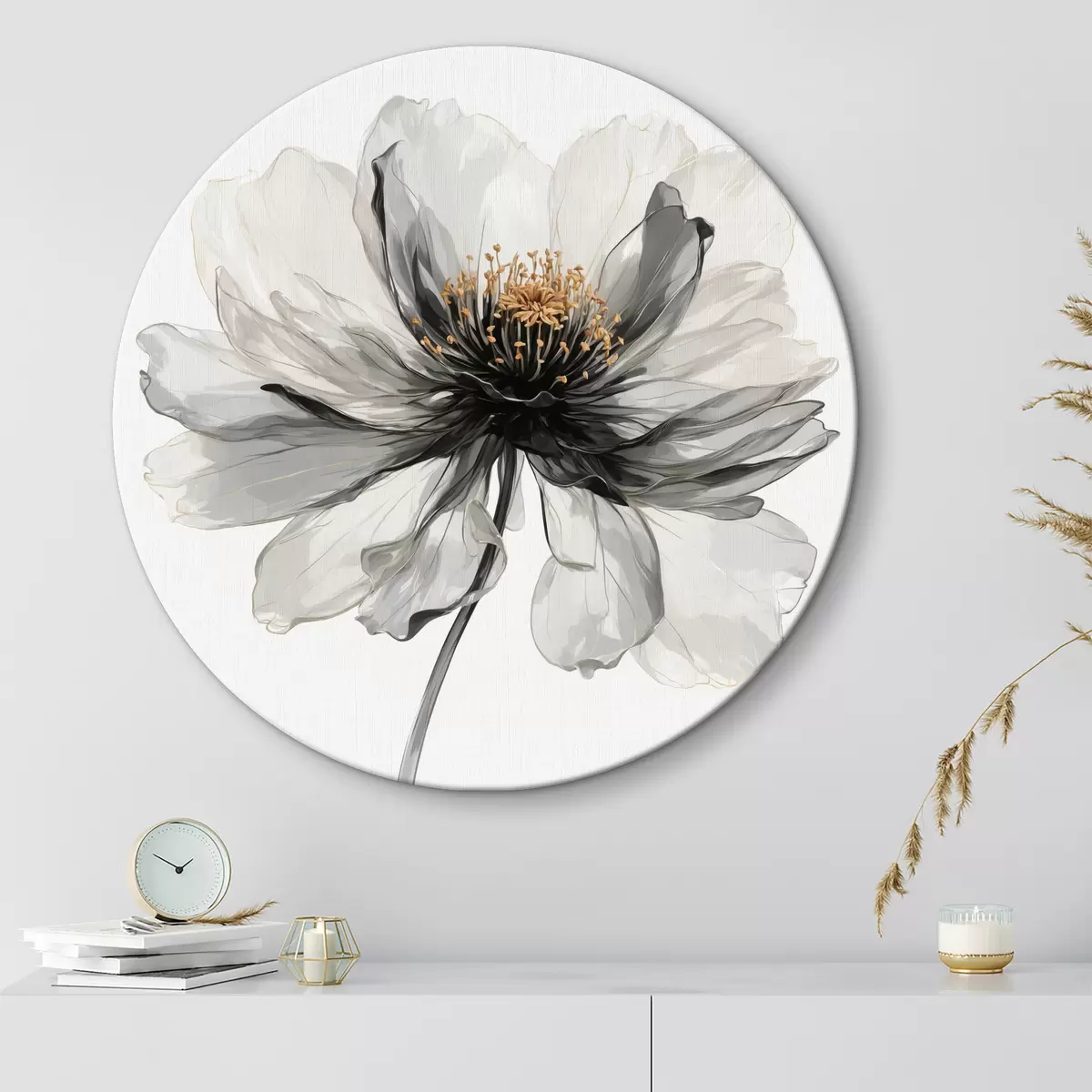 Okrągły obraz Przezroczysty czarny kwiat na białym tle Nr r40066