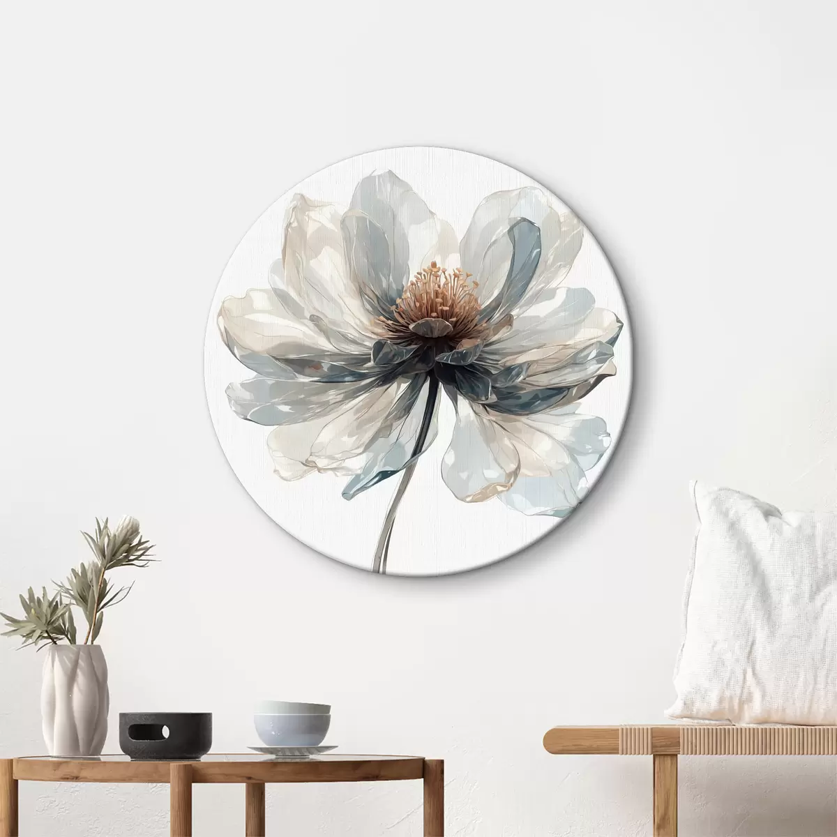 Okrągły obraz Przezroczysty niebieski kwiat na białym tle Nr r40067
