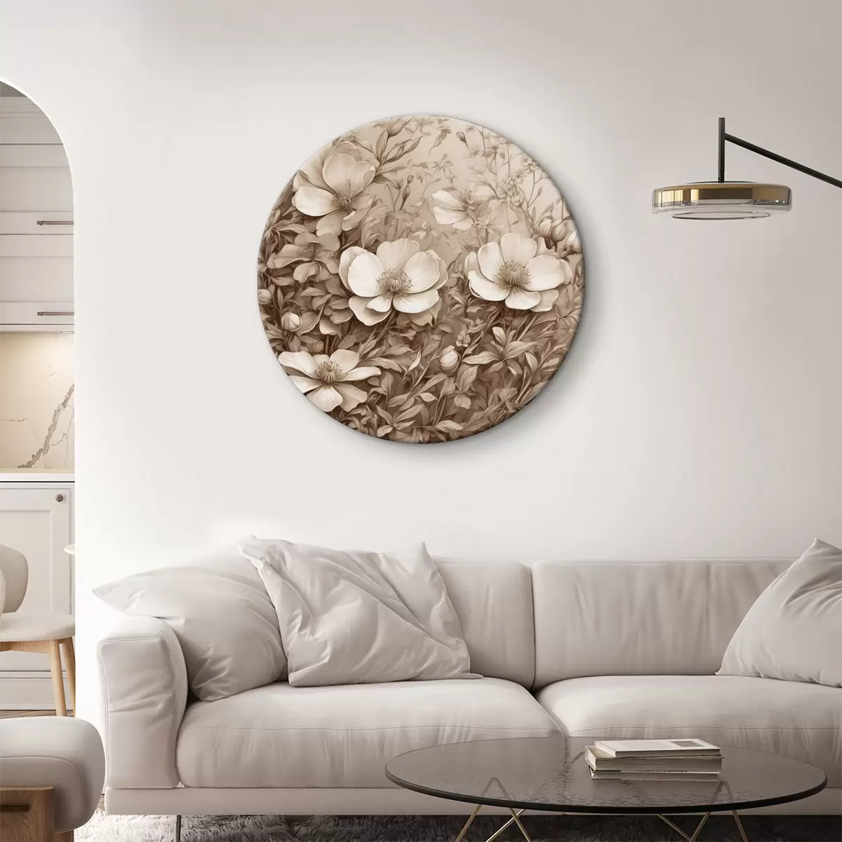 Okrągły obraz Kwiaty i liście w sepii Nr r40072