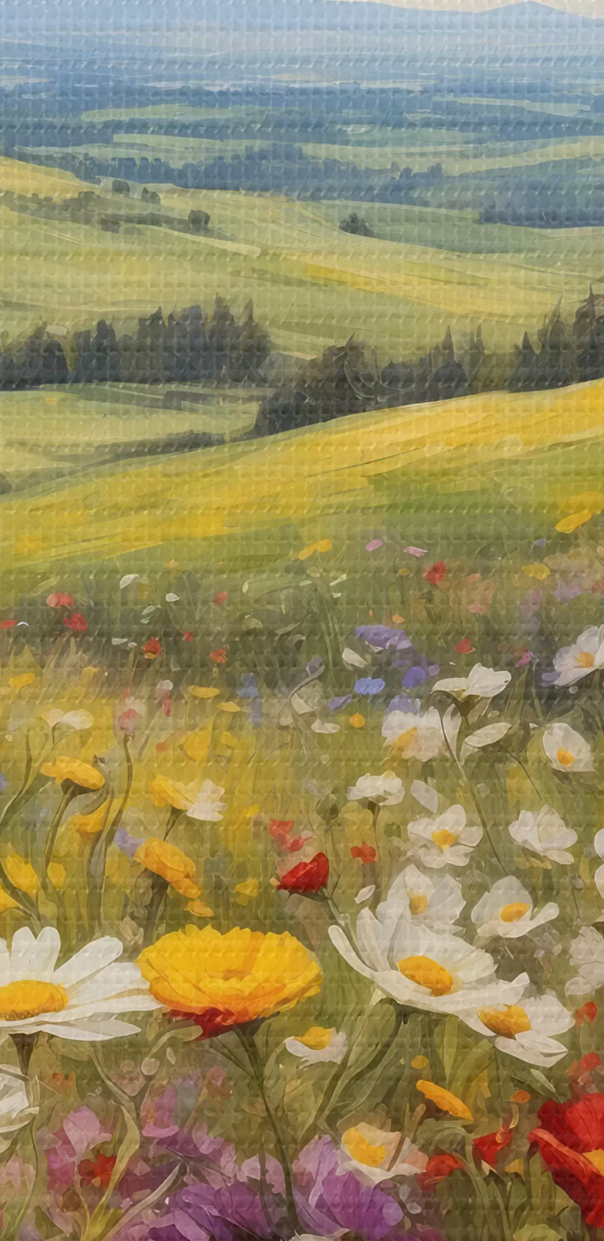 Drobny splot nici na tym płótnie przypomina powierzchnię profesjonalnych płócien artystycznych.