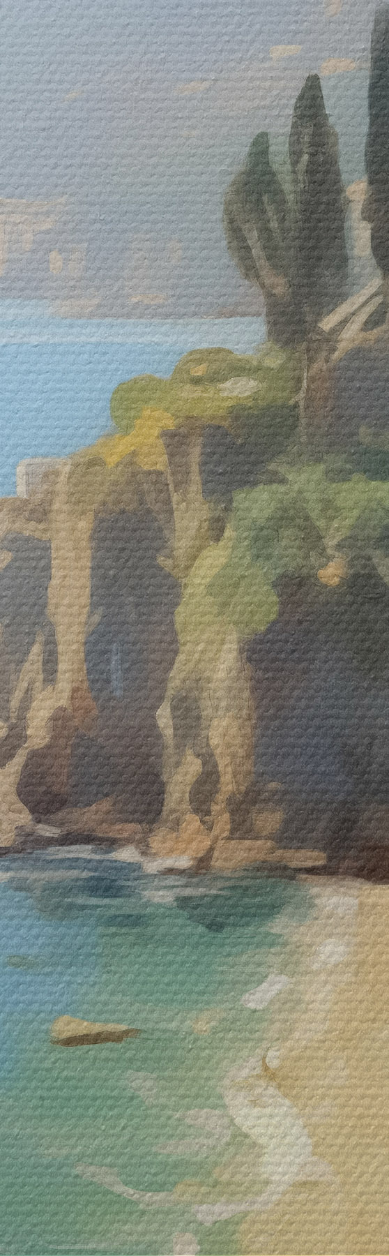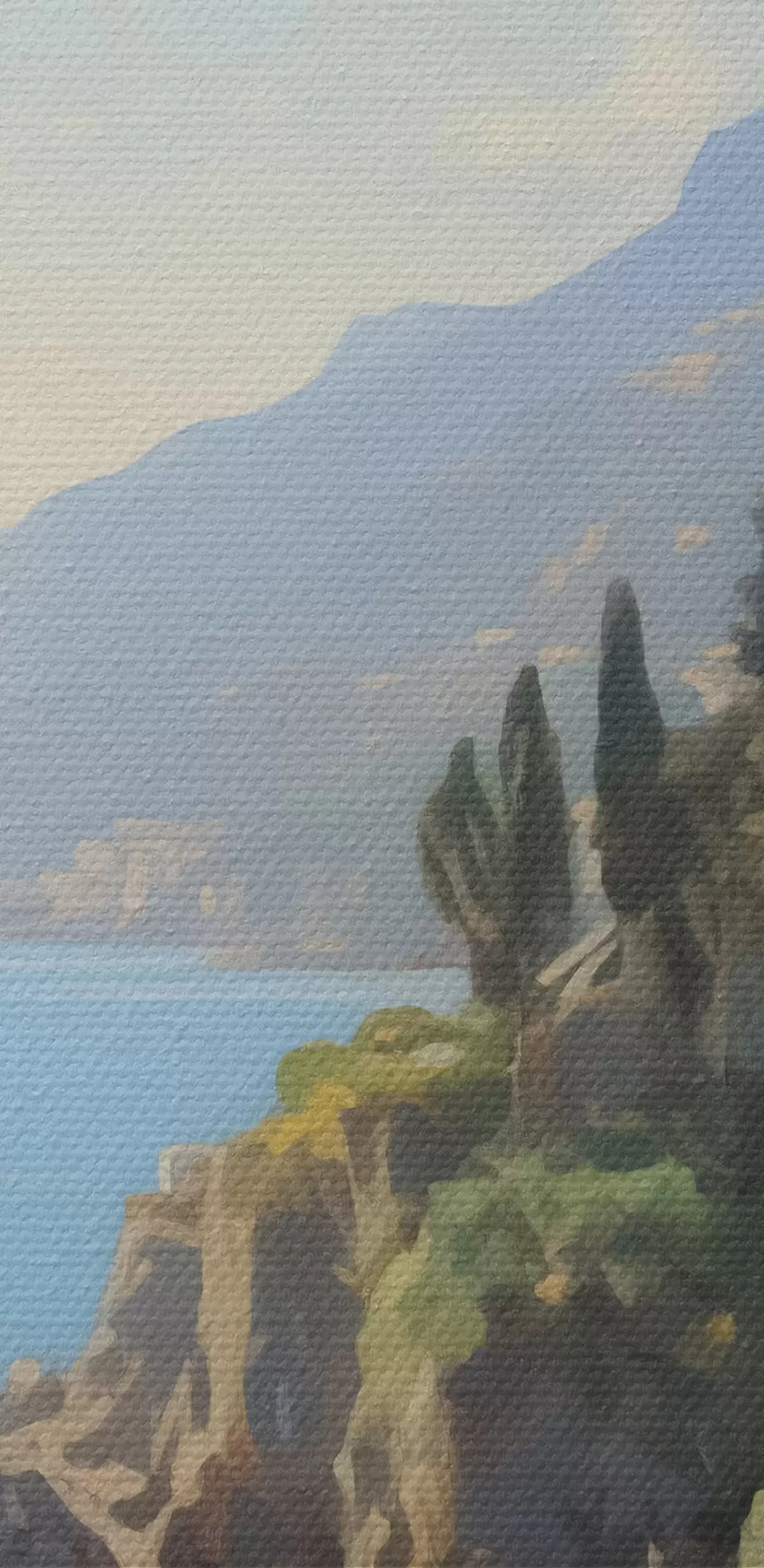 Drobny splot nici na tym płótnie przypomina powierzchnię profesjonalnych płócien artystycznych.
