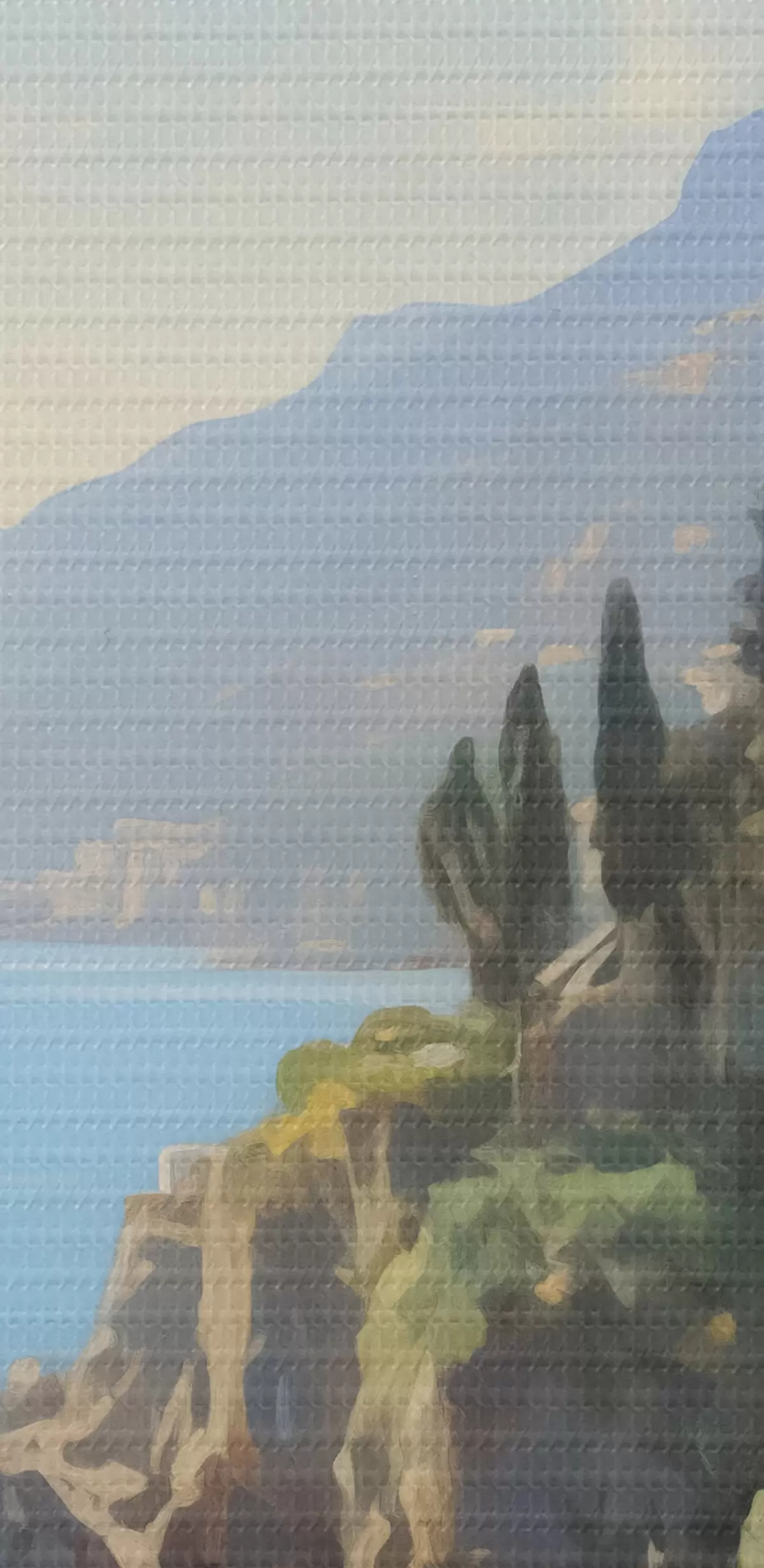 Okrągłe obrazy Widok na zatokę morską, góry we Włoszech z hotelu imitacja malarstwa olejnego r40088