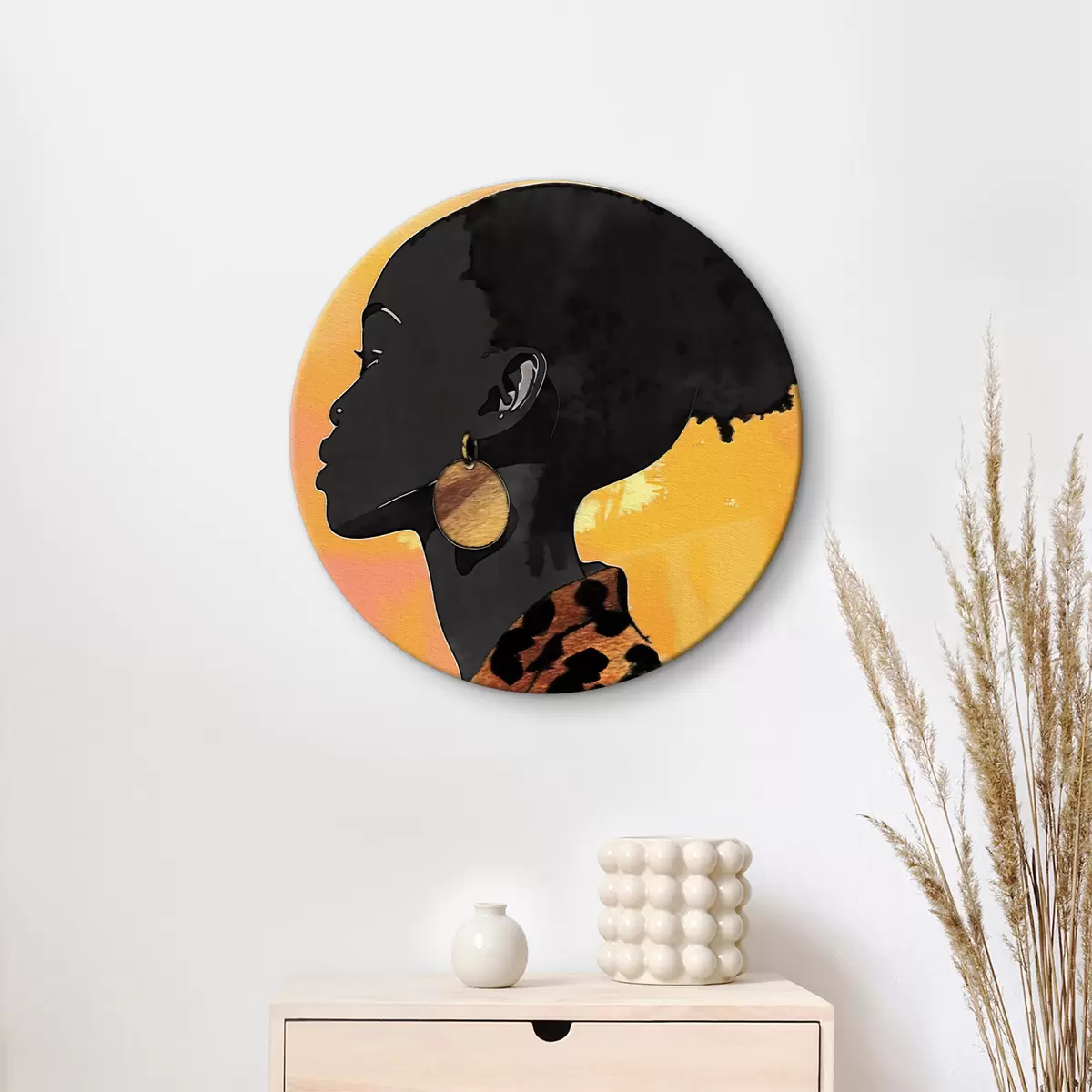 Okrągłe obrazy Moda na ciemną skórę kobiety i zwierzęcy wzór r40112