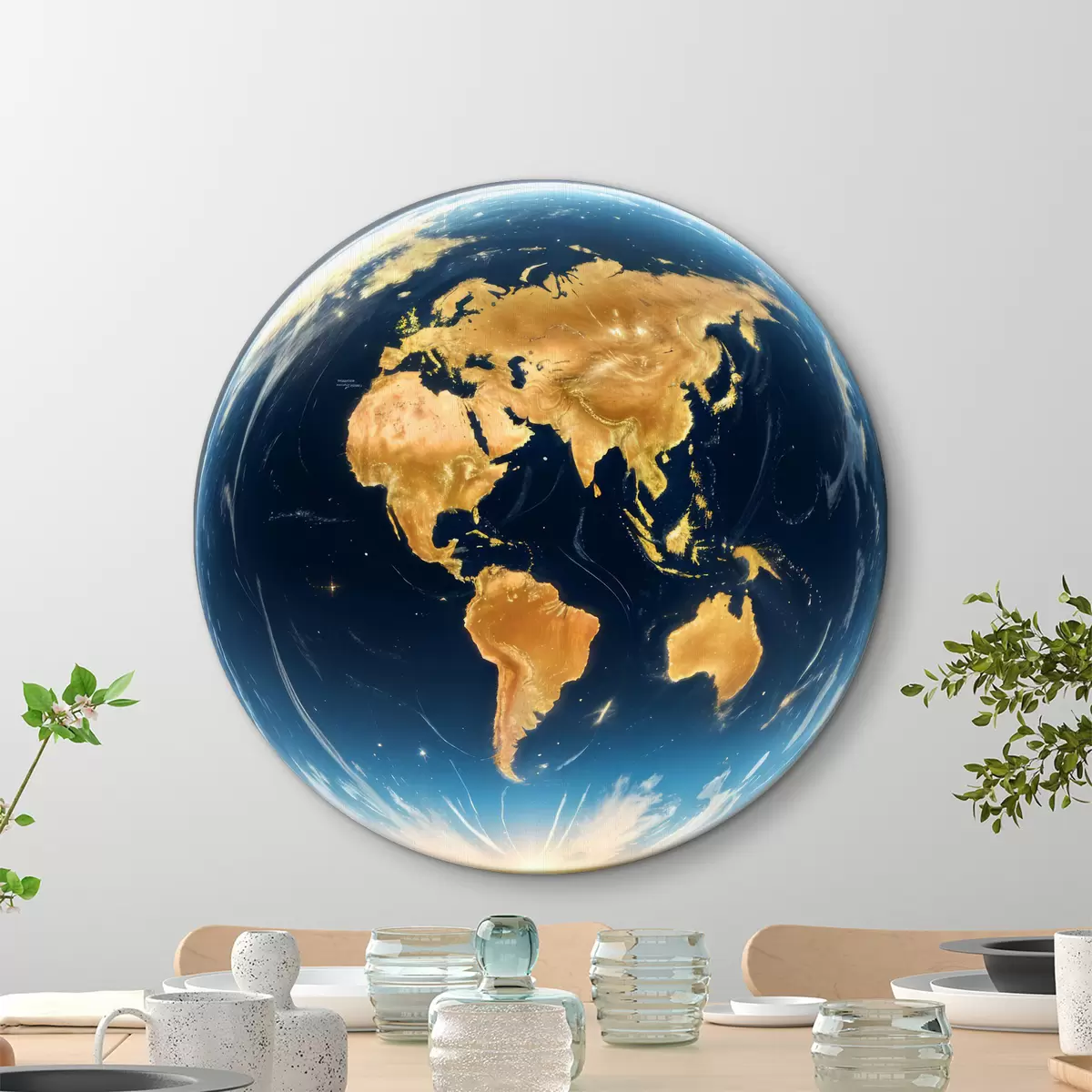 Okrągły obraz Szczegółowy, fotorealistyczny obraz planety Ziemia unoszącej się w kosmicznym krajobrazie Nr r40178