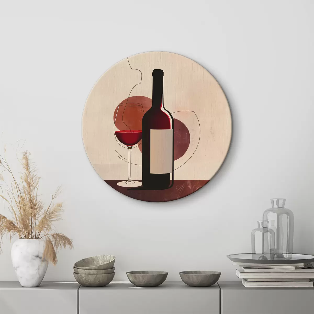 Okrągły obraz Butelka wina i kieliszek z winem Nr r40191
