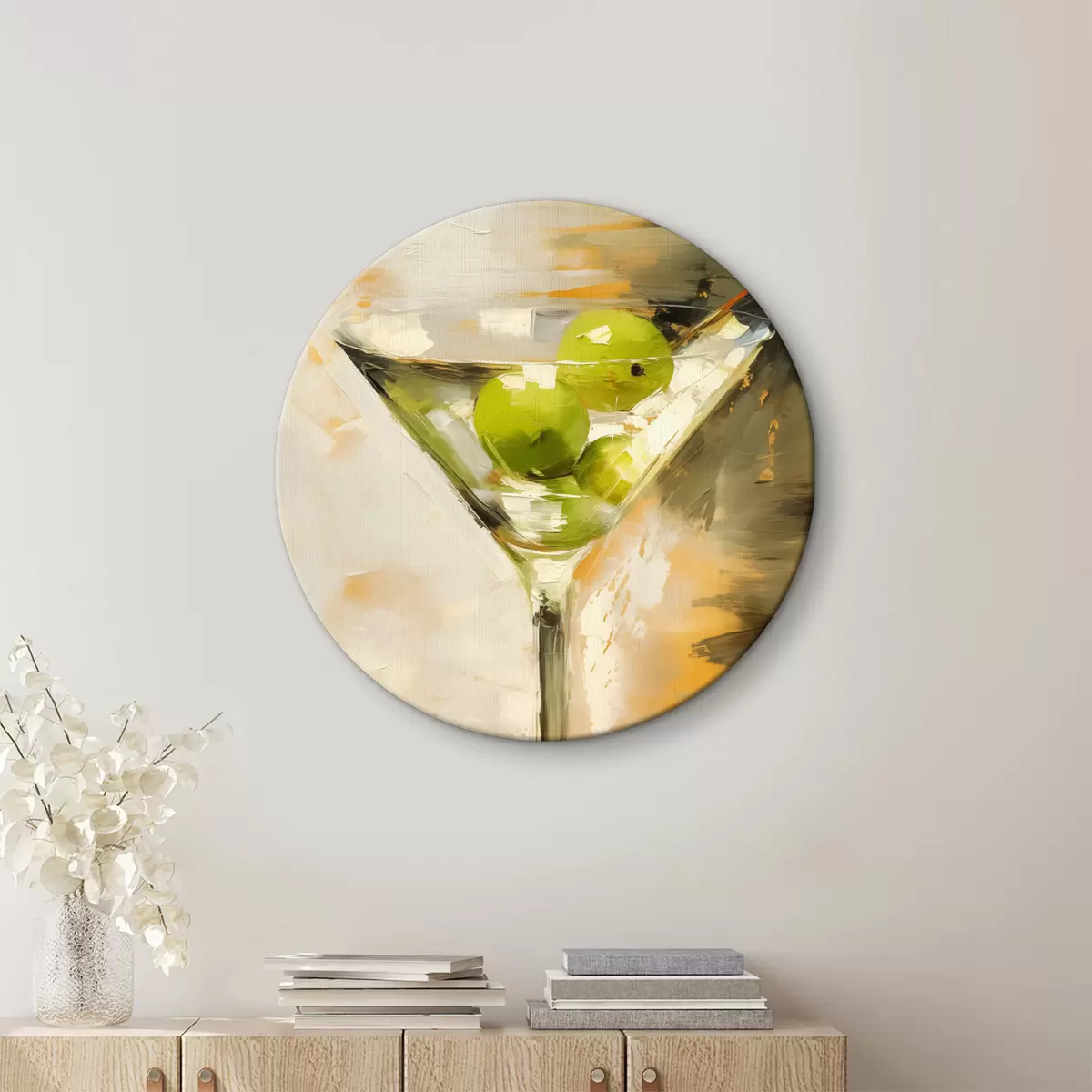 Okrągły obraz Zielone oliwki w kieliszku do martini Nr r40214