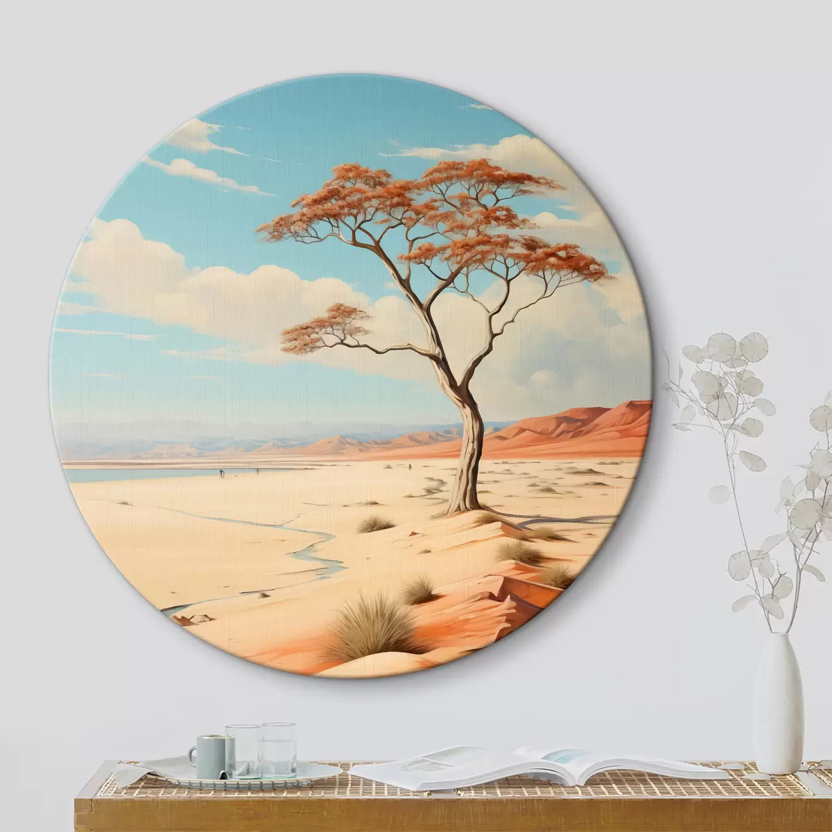 Okrągły obraz Drzewo na pustyni na tle nieba Nr r40221