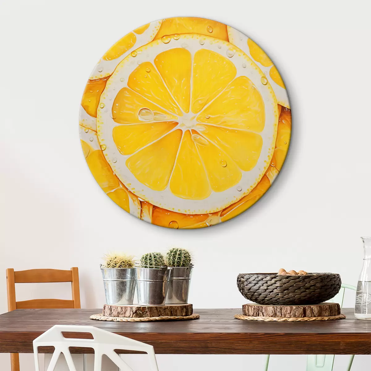Okrągły obraz Okrągłe kawałki żółtej cytryny Nr r40222
