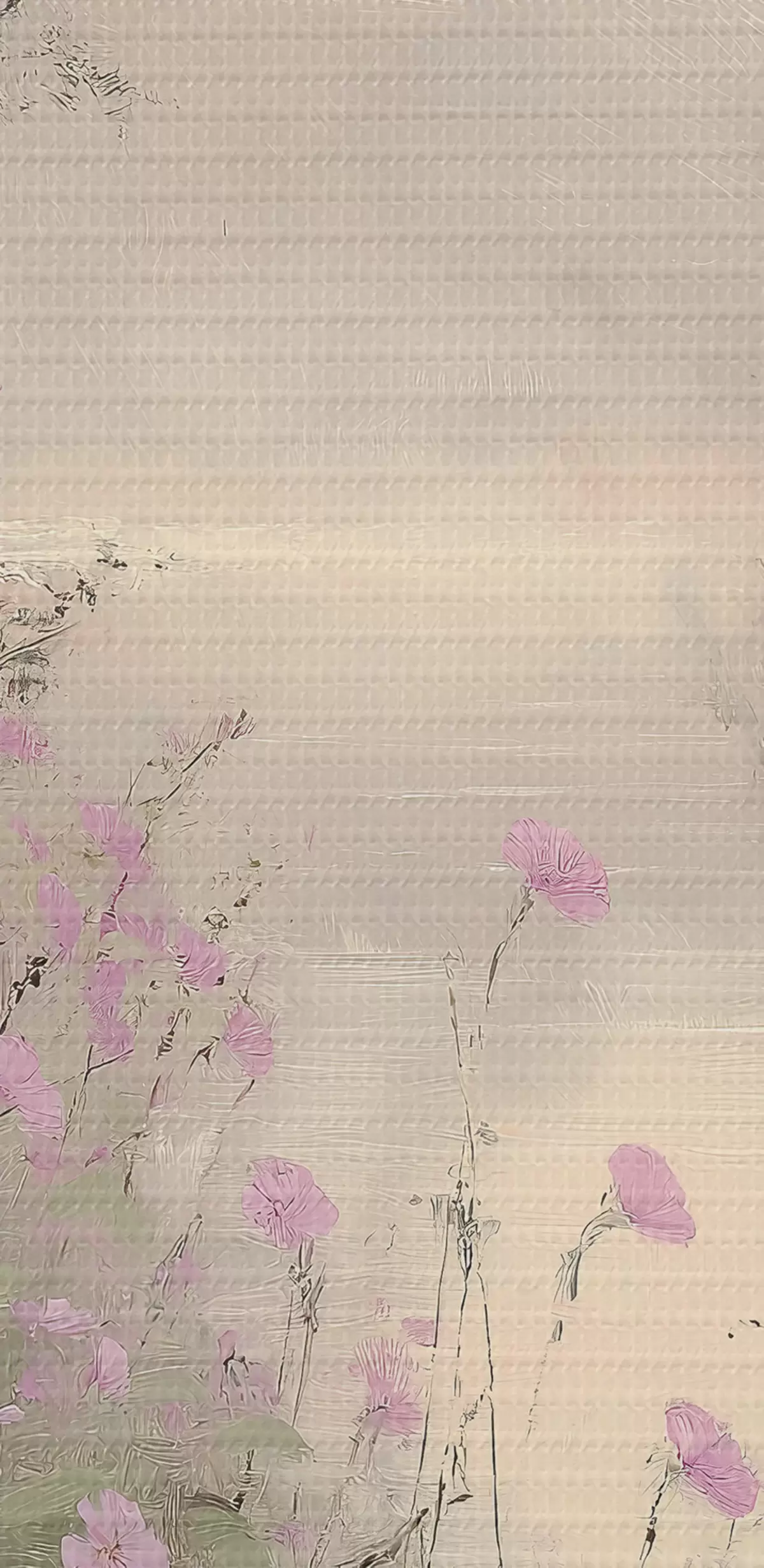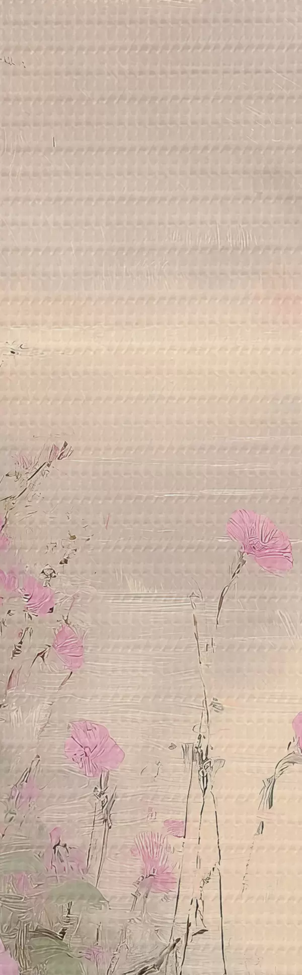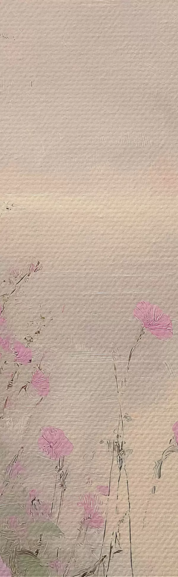 Okrągły obraz Jezioro z różowymi kwiatami, wschód słońca, rysunek olejny, pastelowe beżowe kolory, mgła Nr r40229