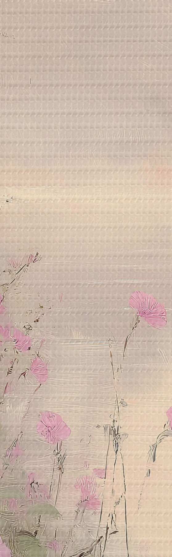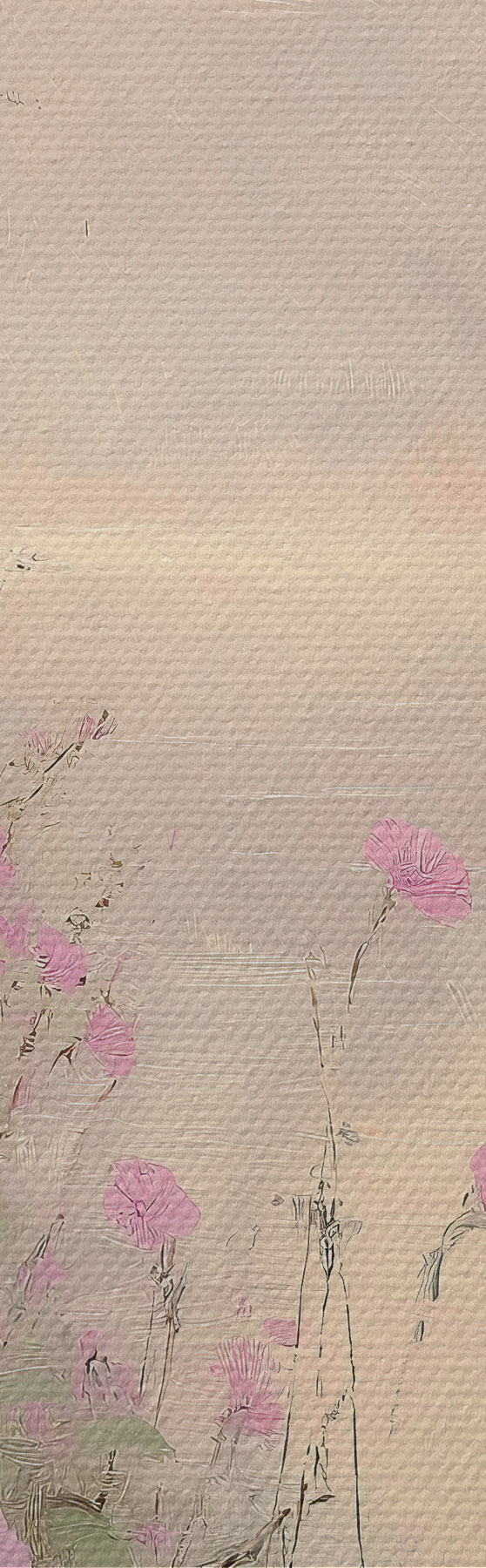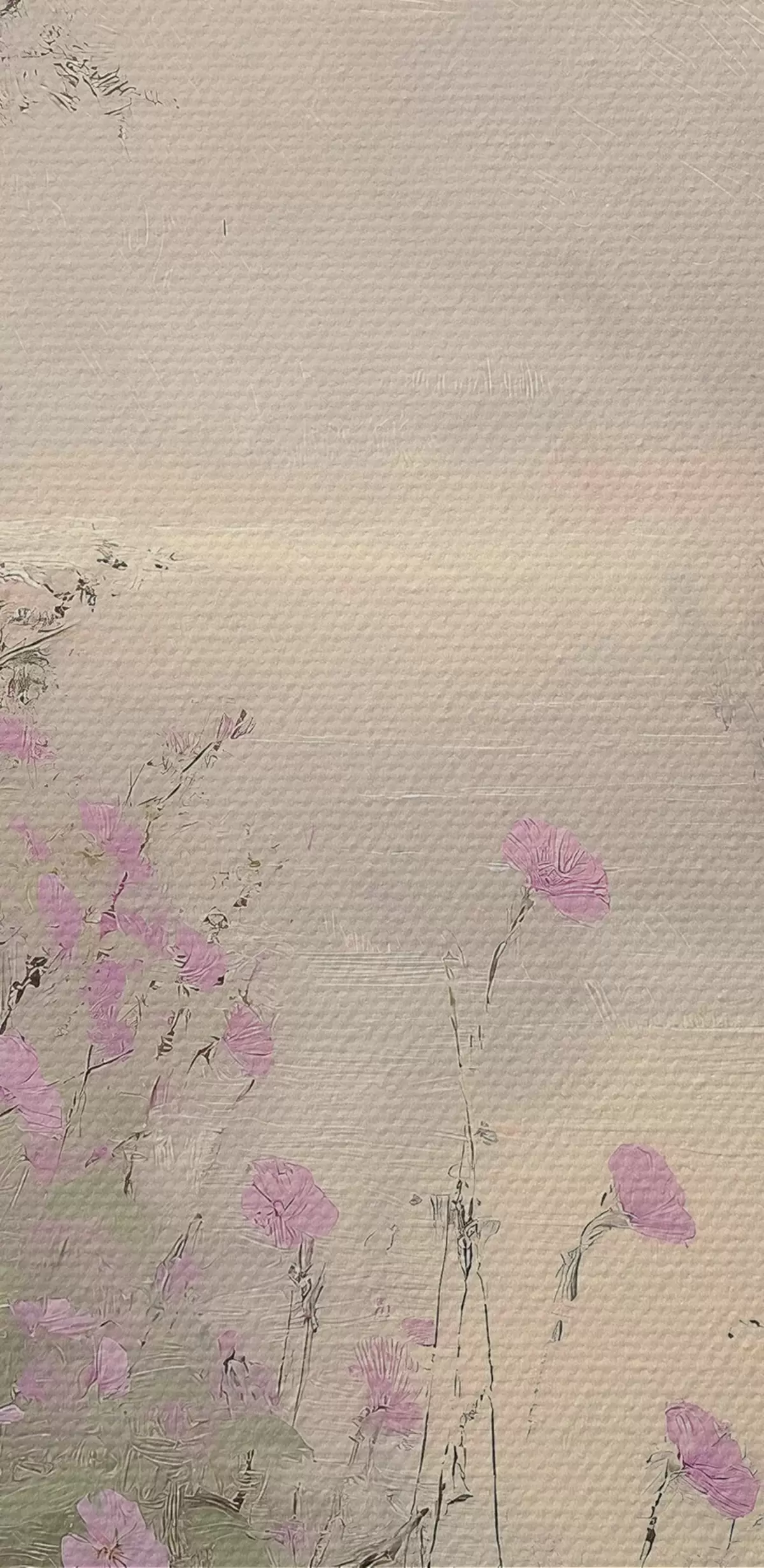 Okrągłe obrazy Jezioro z różowymi kwiatami, wschód słońca, rysunek olejny, pastelowe beżowe kolory, mgła r40229