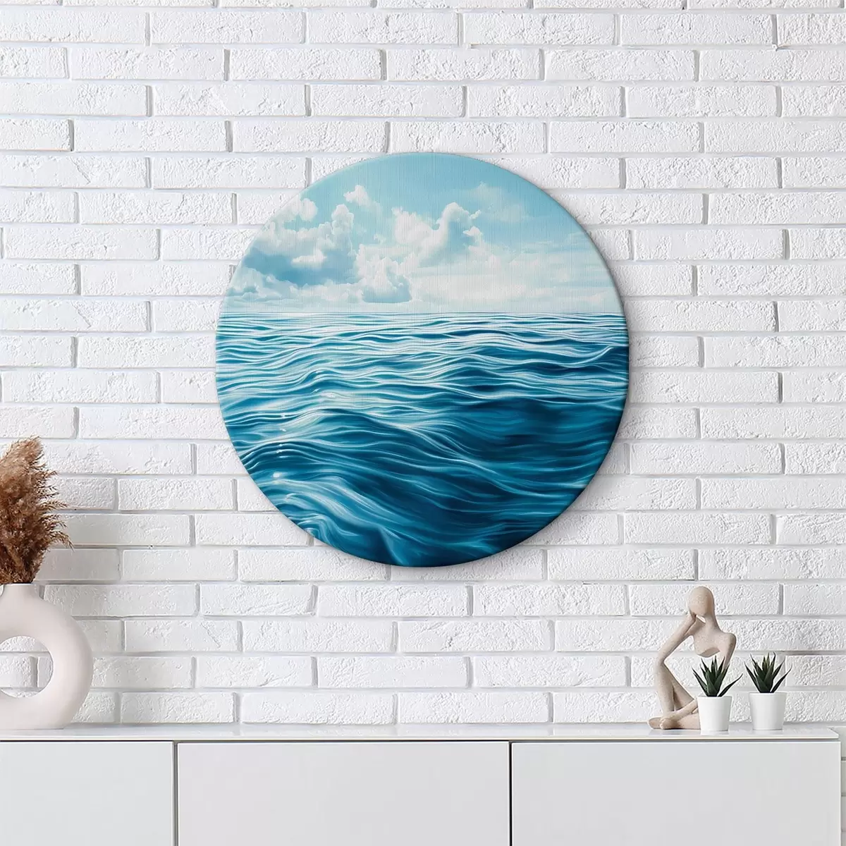 Okrągły obraz Niebieski krajobraz fal i chmur Nr r40235