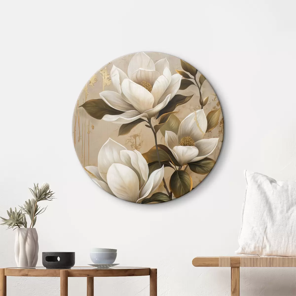 Okrągły obraz duże kwiaty magnolii Nr r40236