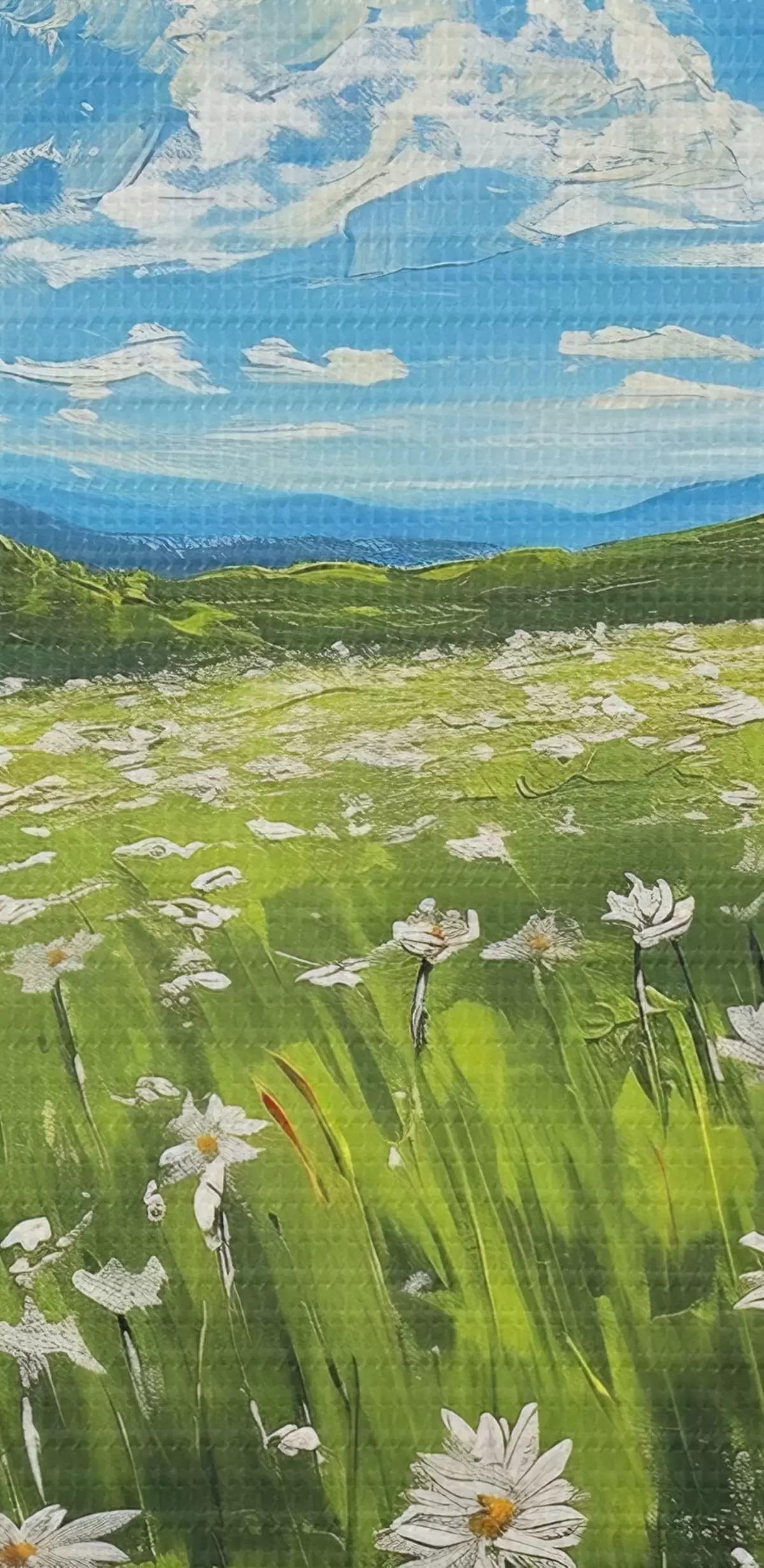 Drobny splot nici na tym płótnie przypomina powierzchnię profesjonalnych płócien artystycznych.