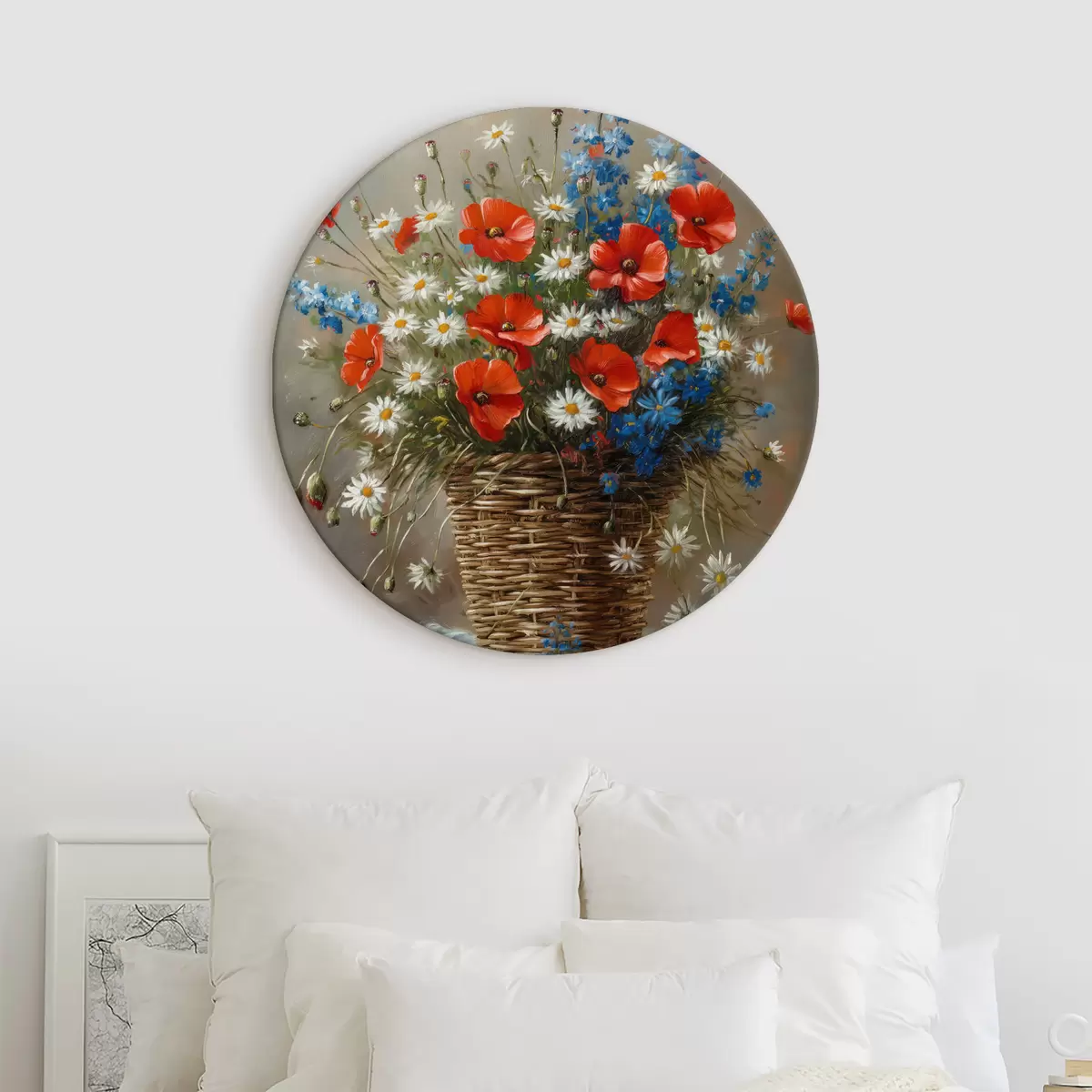 Okrągły obraz bukiet kwiatów polnych w koszyku Nr r40262