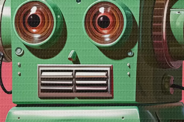 Okrągły obraz Robot Android z zieloną głową na różowym tle Nr r40314