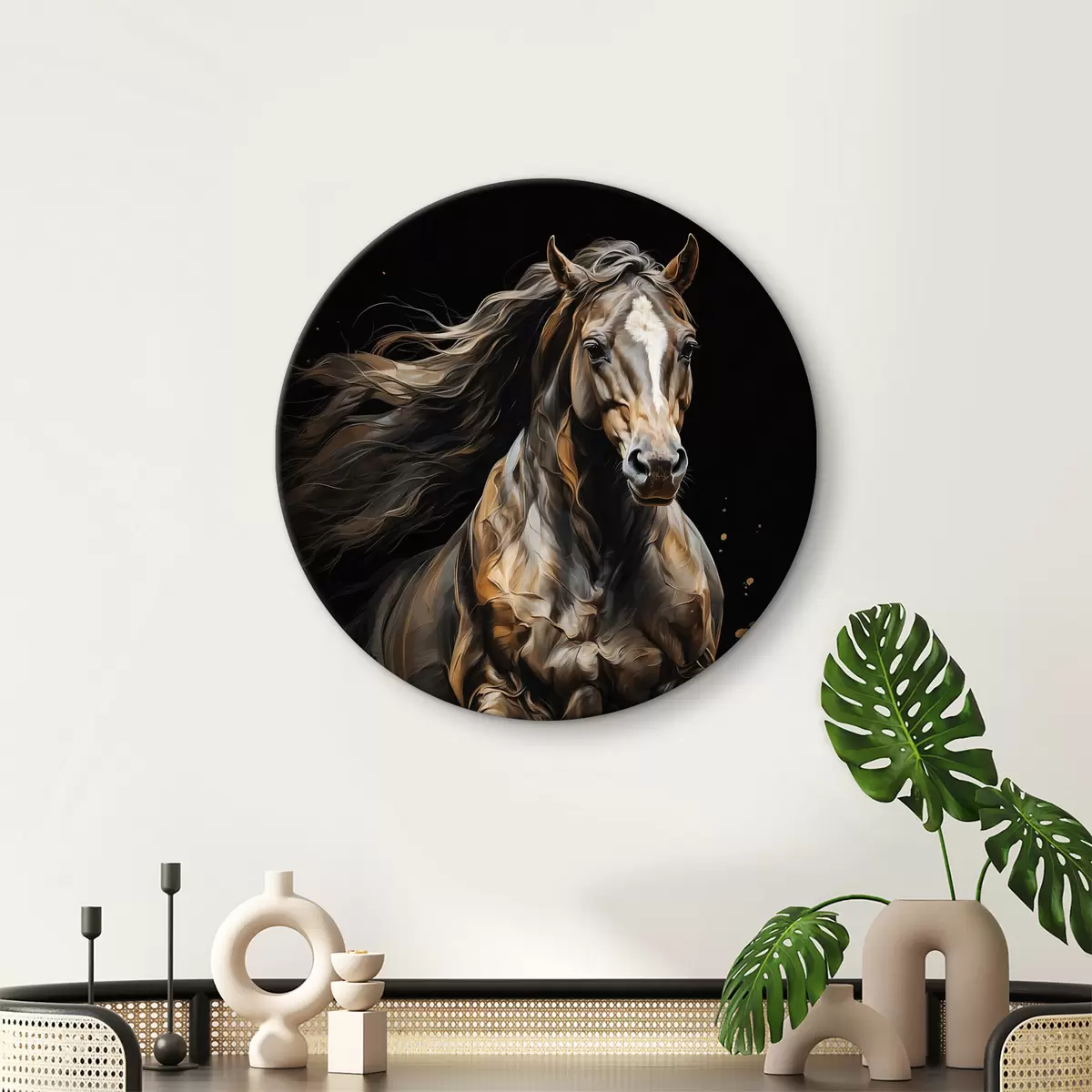Okrągły obraz Koń na czarnym tle Nr r40325