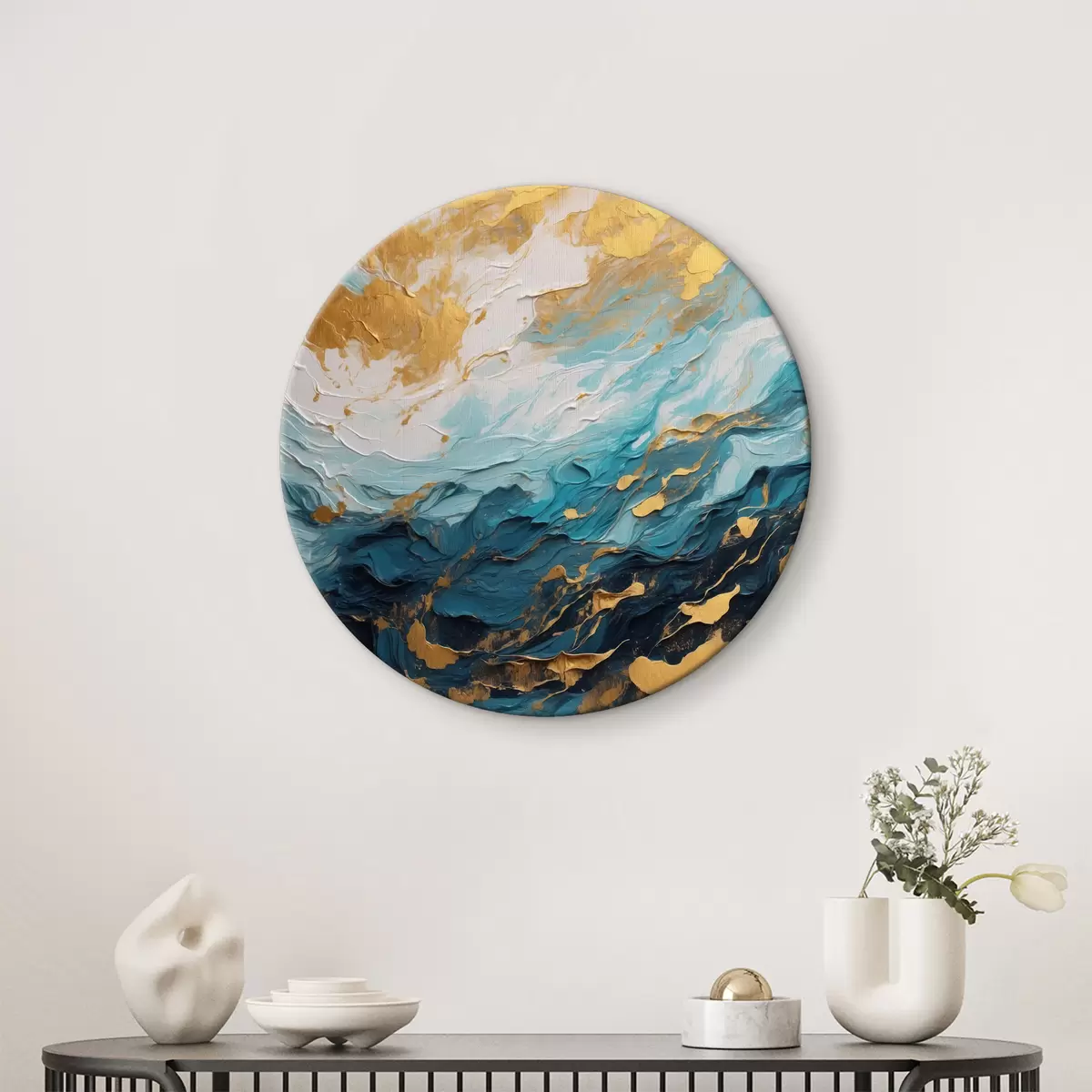 Okrągły obraz Abstrakcyjny obraz w niebieskich i białych kolorach Nr r40328