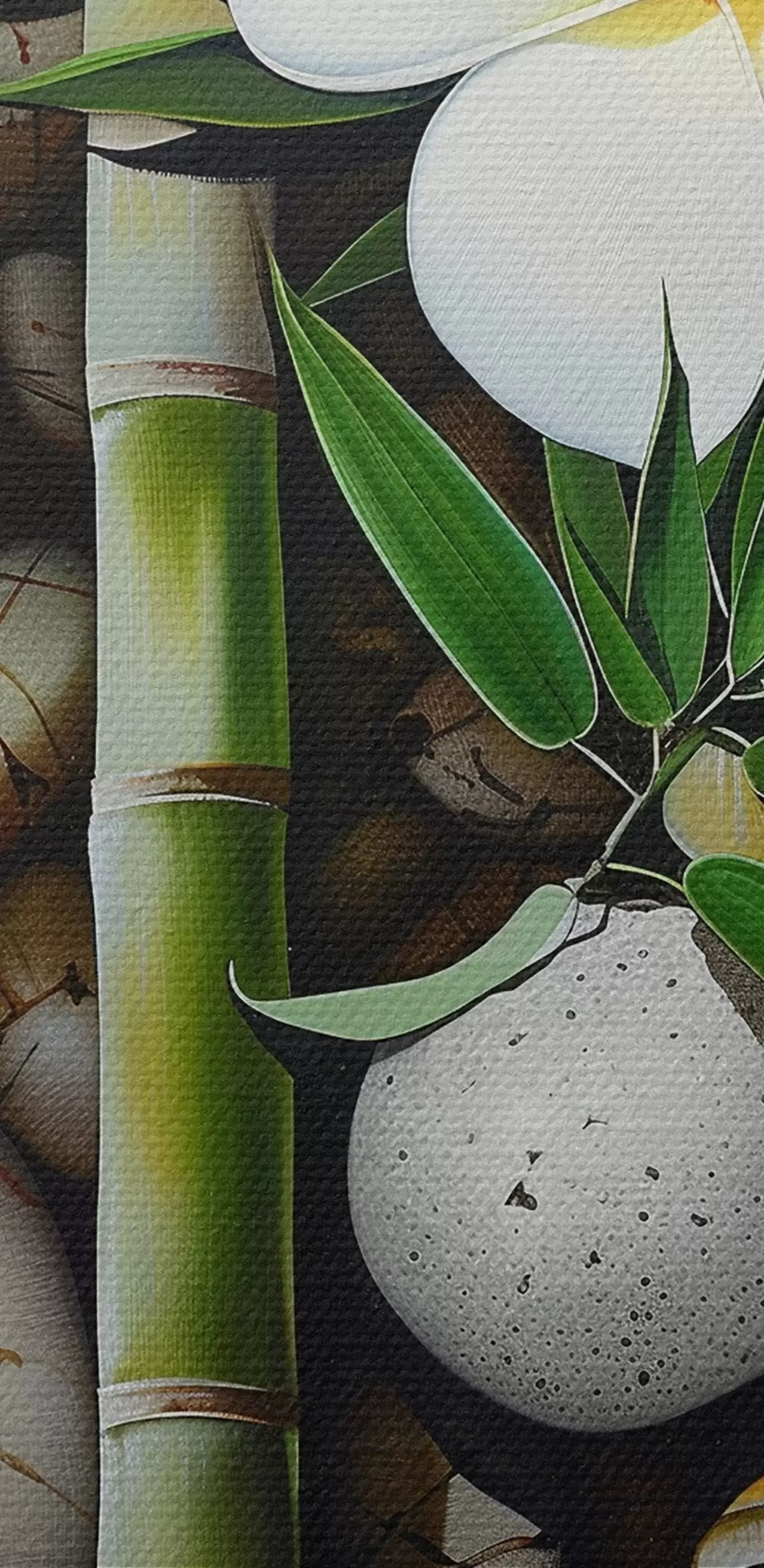 Okrągły obraz Kwiaty i bambus Nr r40367