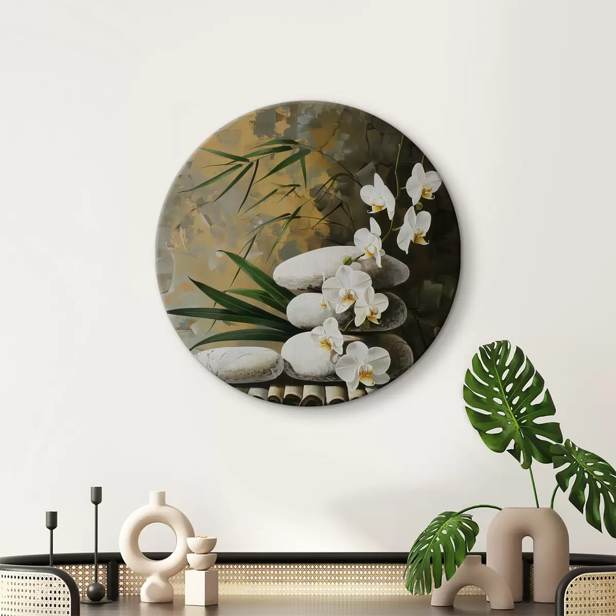 Okrągły obraz Orchidea i białe kamienie Nr r40369