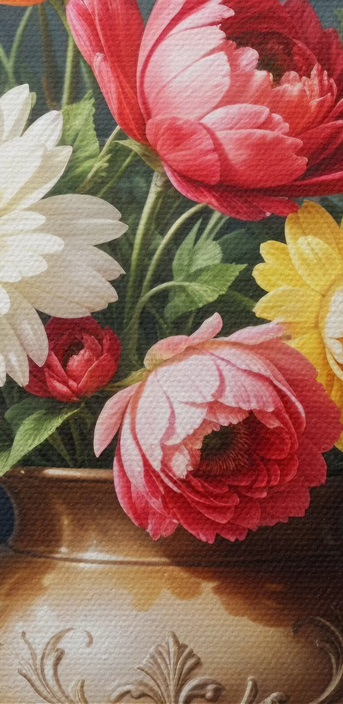 Do zamówienia dostępne są trzy rodzaje materiału: Economic Canvas - gęsty i trwały materiał do druku cyfrowego, identyczny z płótnem malarskim, wodoodporna powierzchnia, realistyczne odwzorowanie szczegółów, materiał średnioziarnisty. Premium Canvas - tekstura przypominająca płótno malarskie (przeplatane drobne nitki). Miękka, szczegółowa reprodukcja obrazu na matowej powierzchni. Eco-Premium - wysokiej jakości tkanina w 100% bawełniana. Dzięki naturalnym włóknom bawełnianym materiał jest trwały i odporny na zużycie. Doskonałe odwzorowanie kolorów i szczegółów.