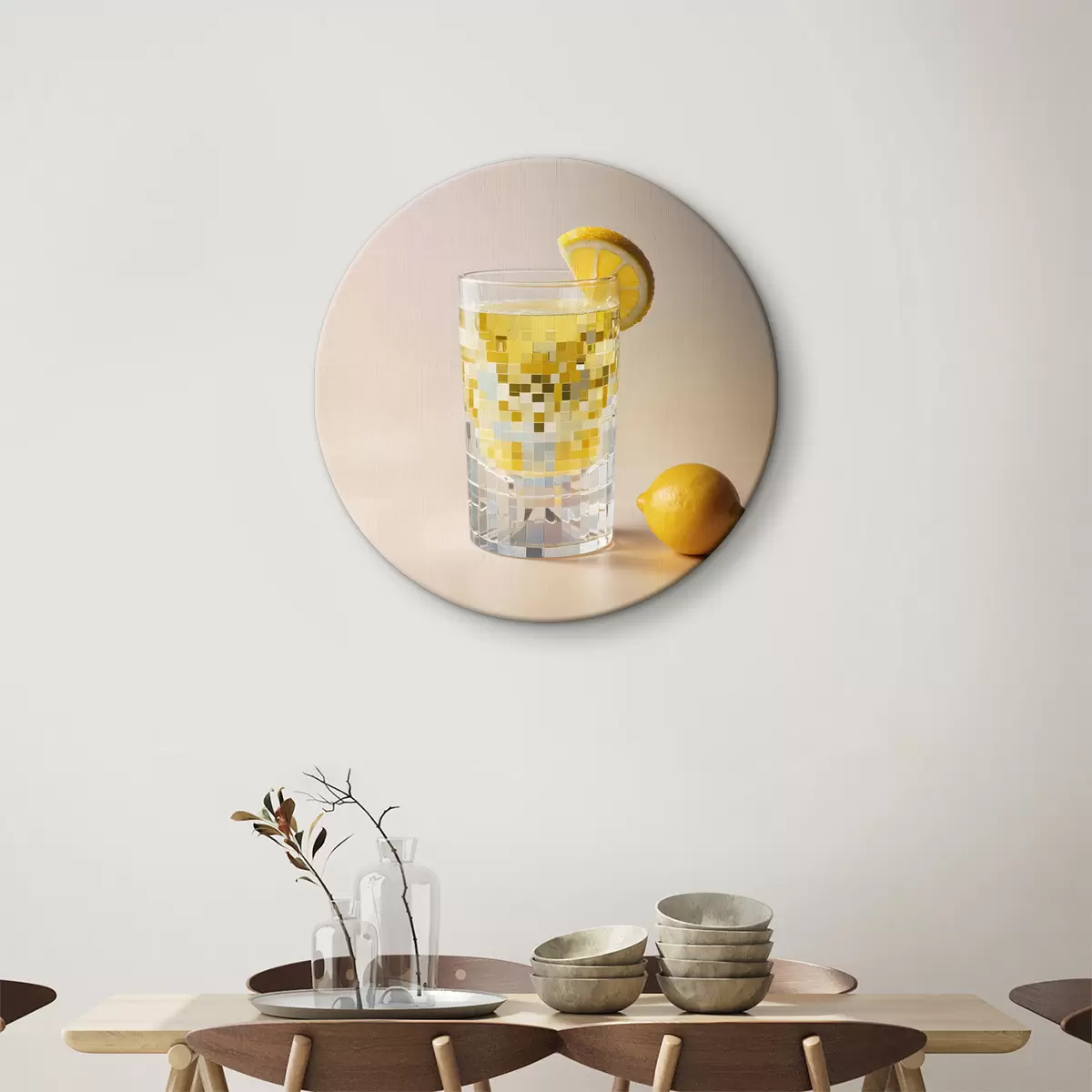 Okrągły obraz Szklanka mrożonego napoju z plasterkami cytryny na jasnym tle Nr r40415