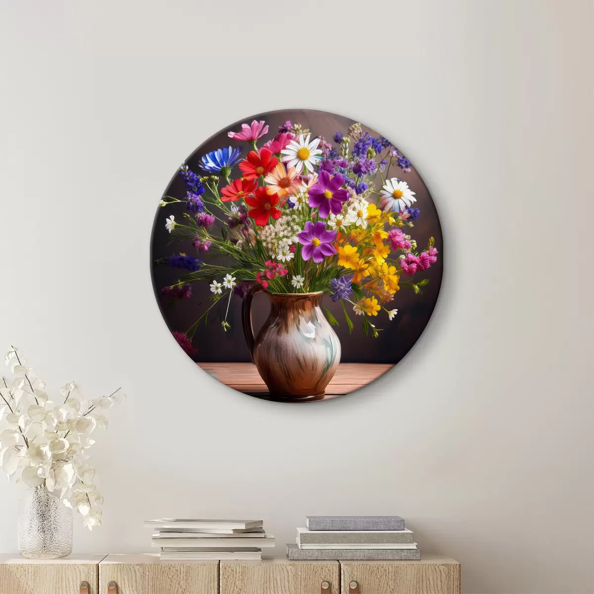 Okrągły obraz jasne kwiaty polne w wazonie Nr r40420
