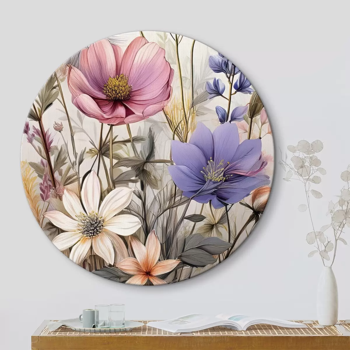 Okrągły obraz kwiaty polne, kompozycje kwiatowe Nr r40423