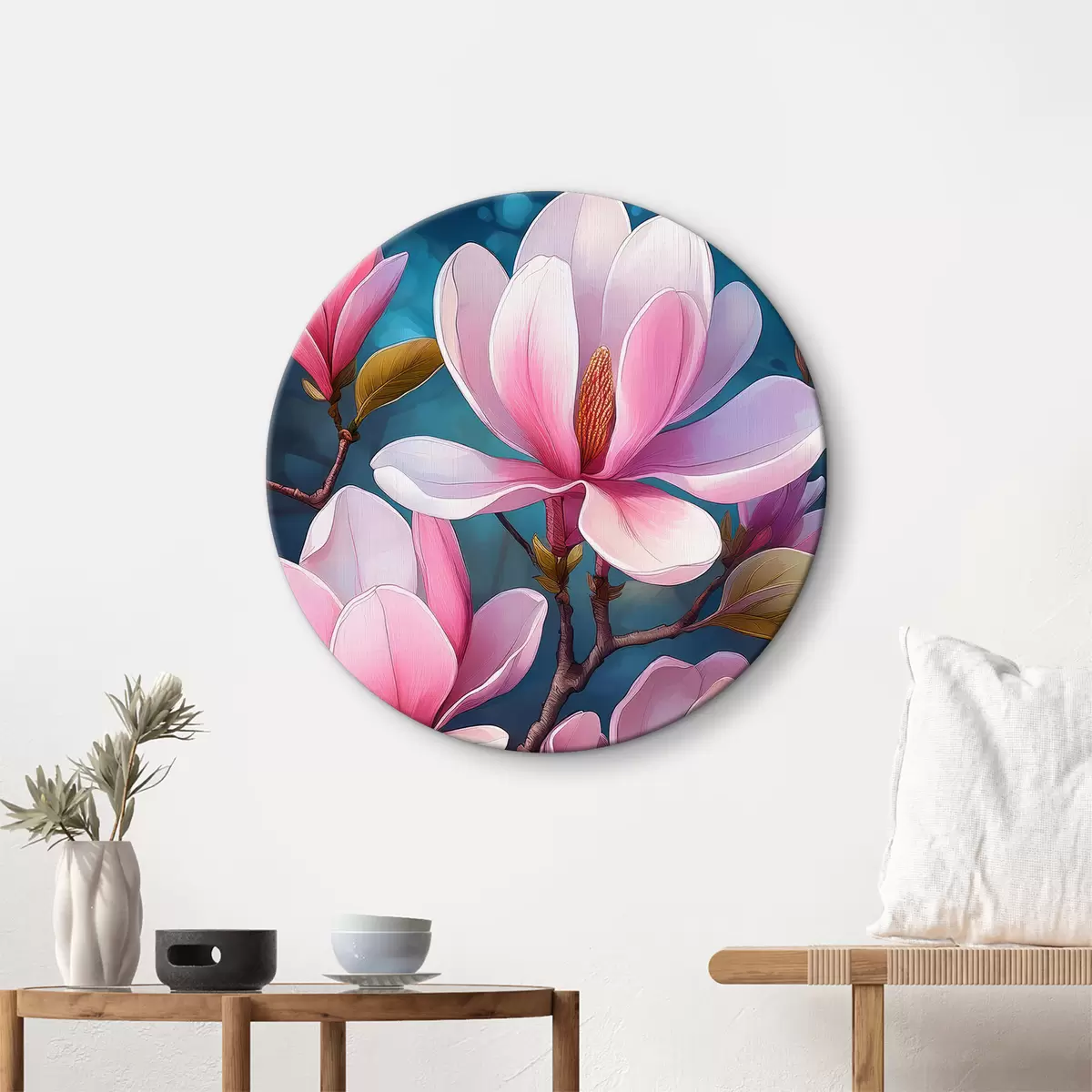 Okrągły obraz kwiaty magnolii, magnolia różowa, duże kwiaty Nr r40425