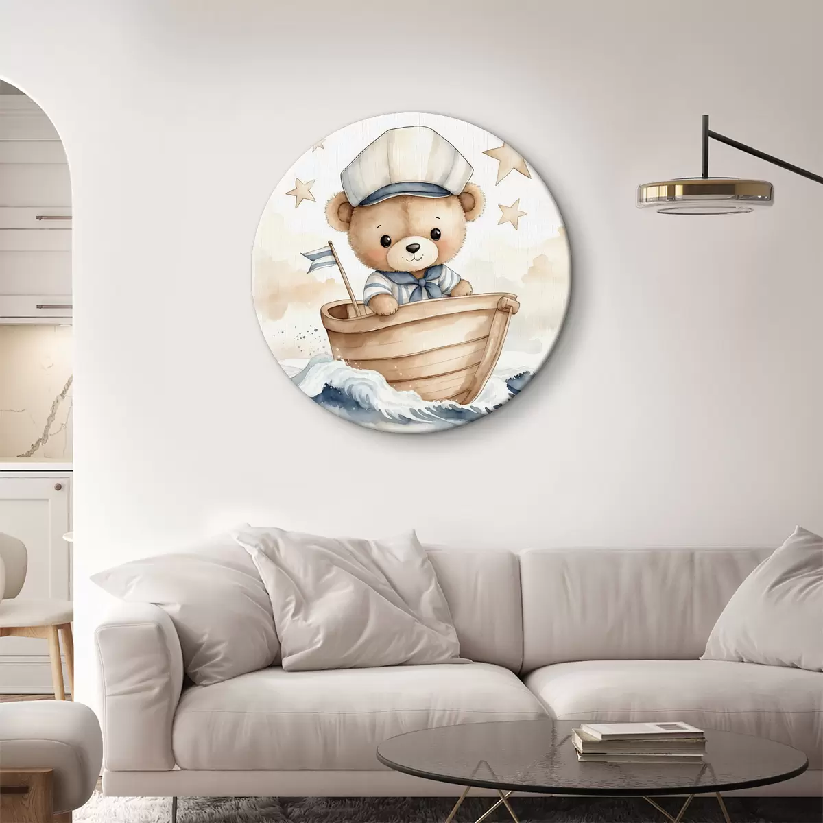 Okrągłe obrazy Słodki akwarelowy miś w łódce r40428