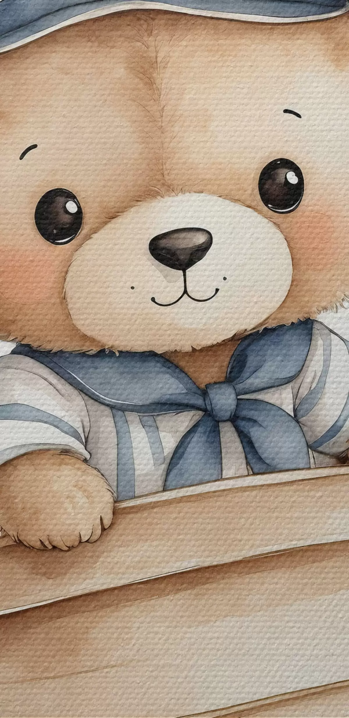 Okrągły obraz Słodki akwarelowy miś w łódce Nr r40428