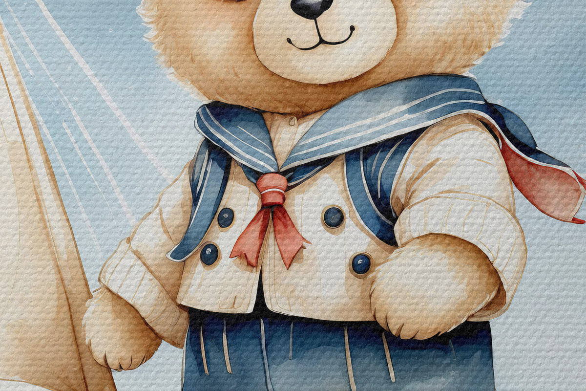 Okrągły obraz Uroczy akwarelowy miś w łódce z gwiazdami na niebie Nr r40429