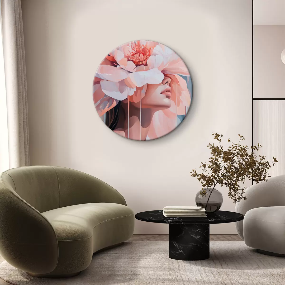 Okrągły obraz Portret kobiety z dużym różowym kwiatem na głowie Nr r40430