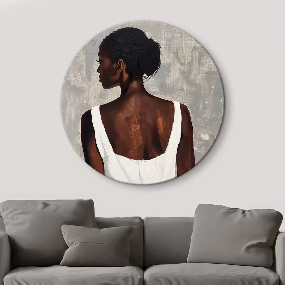 Okrągły obraz Dziewczyna w białej sukience Nr r40440