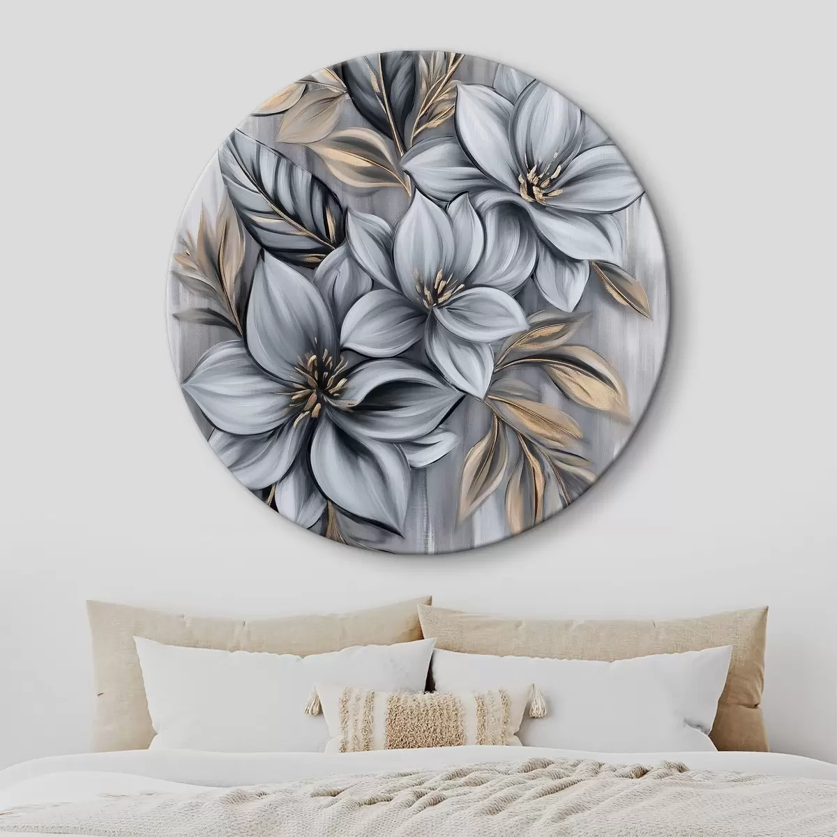 Okrągły obraz Kwiaty w odcieniach szarości Nr r40454