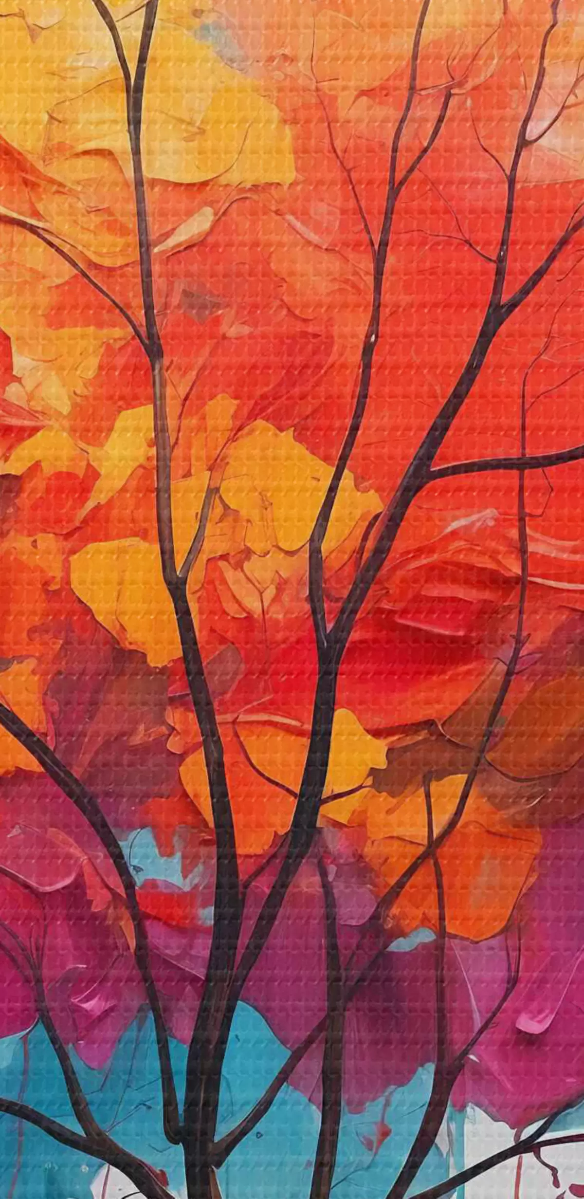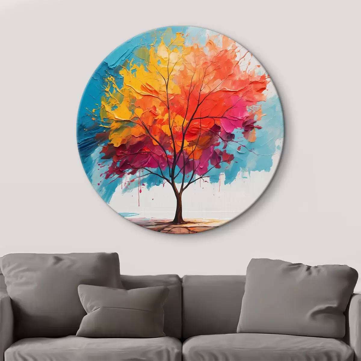Okrągłe obrazy Abstrakcyjne wielokolorowe drzewo na jeziorze r40455