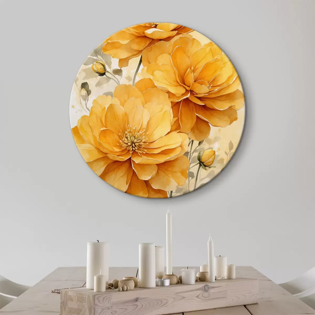 Okrągły obraz Żółte kwiaty na rozmytym tle Nr r40482