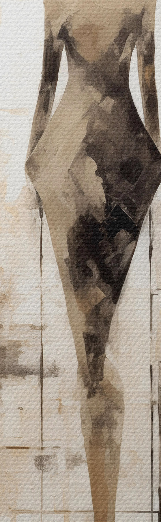 Okrągłe obrazy Abstrakcyjna sylwetka kobiety, imitacja otarć i pociągnięć pędzla r40485
