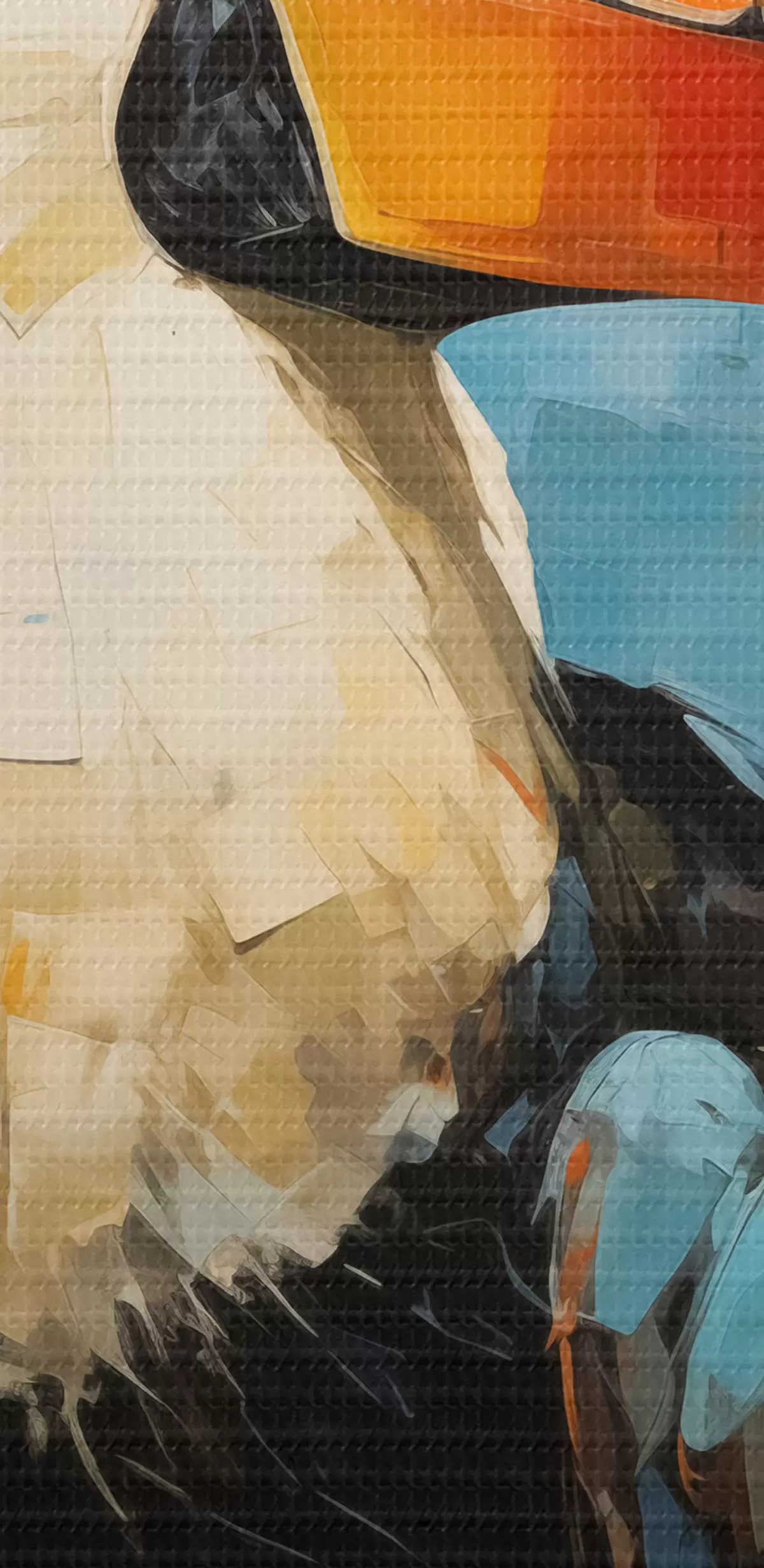 Okrągły obraz Ptak tukan na niebiesko-zielonym tle, imitacja pociągnięć pędzla Nr r40498