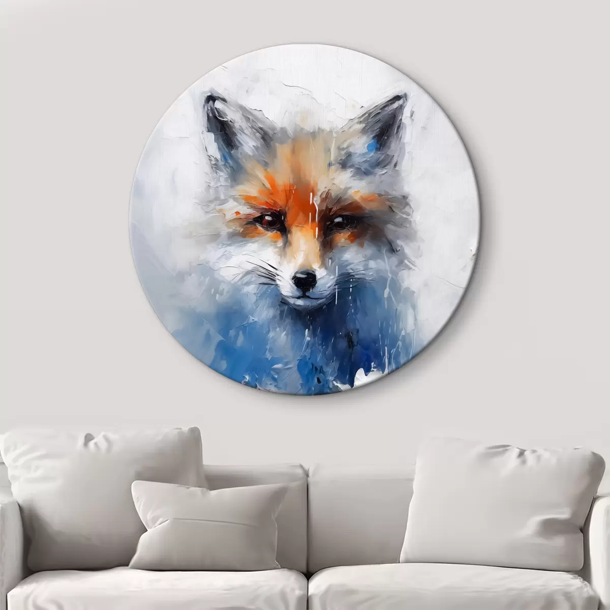 Okrągły obraz Abstrakcyjny portret lisa w niebieskich plamach farby Nr r40524