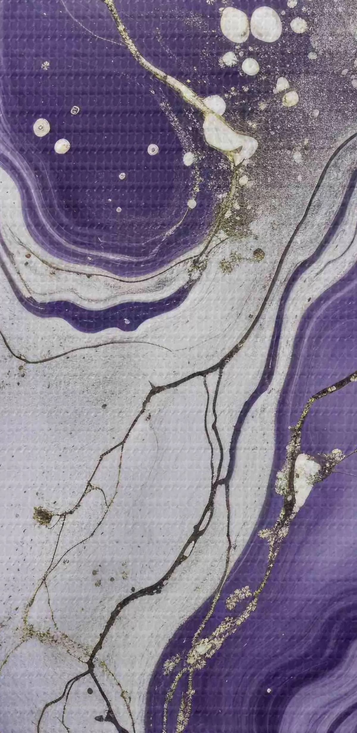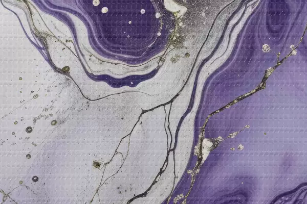 Okrągły obraz Abstrakcyjna płynna kompozycja artystyczna wydrukowana wirującymi fioletowymi, białymi i szarymi farbami Nr r40566