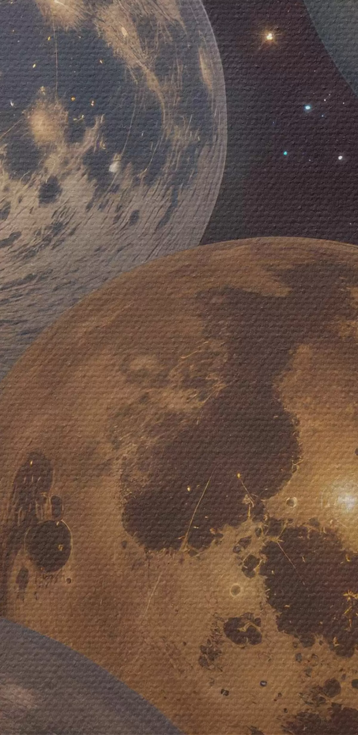 Okrągły obraz Abstrakcyjny kosmiczny nadruk z kolorowymi planetami i księżycami unoszącymi się na rozgwieżdżonym nocnym niebie Nr r40607
