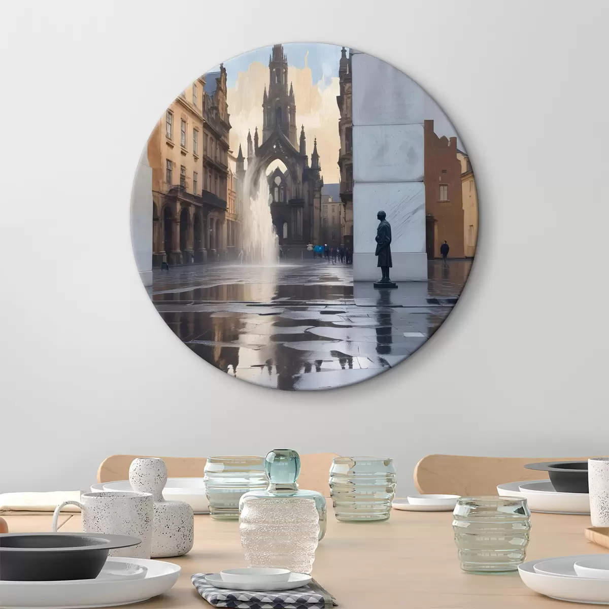 Okrągły obraz Średniowieczna katedra z gotycką architekturą stoi w tle, a jej iglice sięgają nieba Nr r40611
