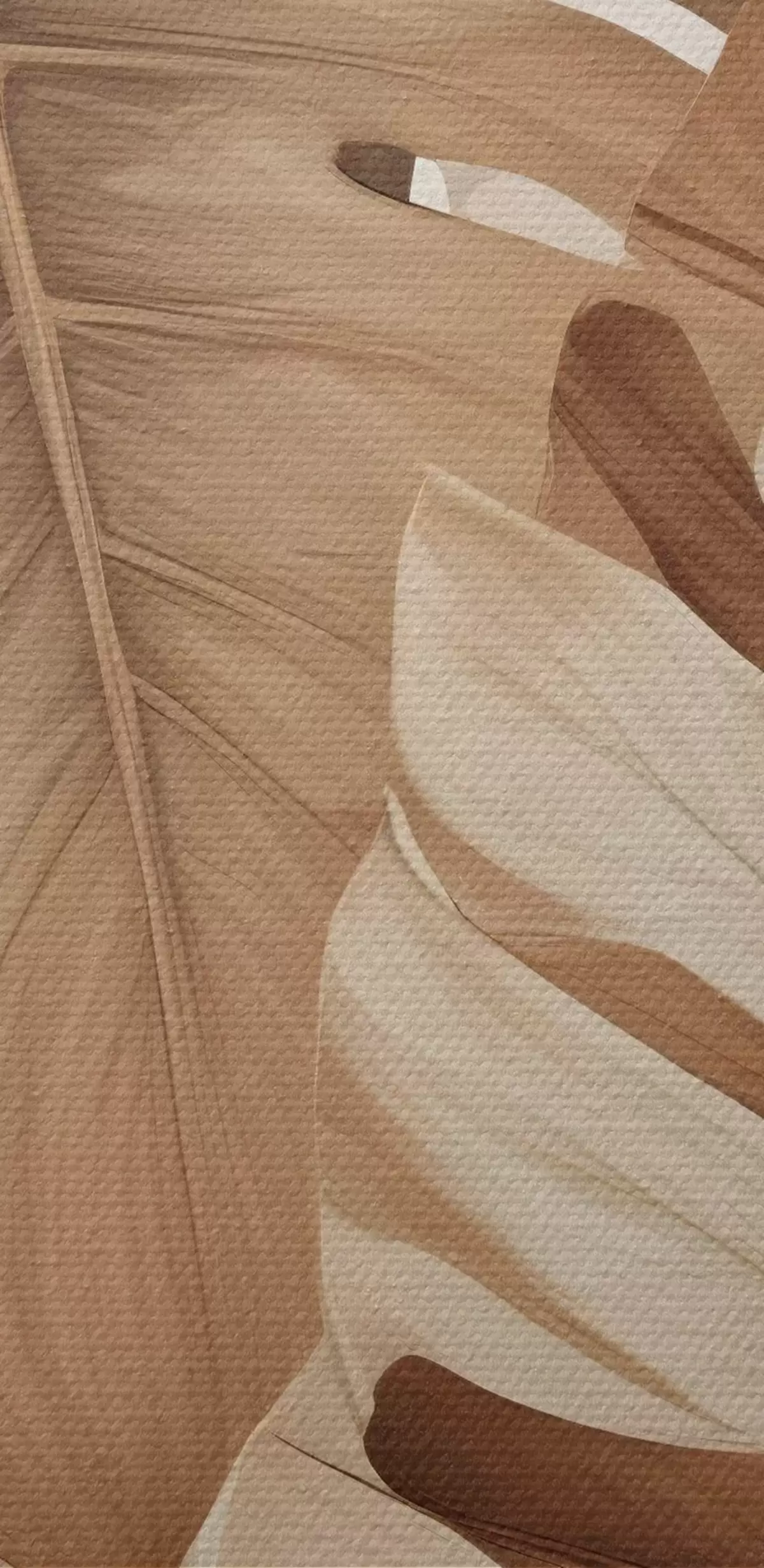Okrągłe obrazy Nadruk tropikalnych liści o naturalnej, organicznej fakturze w odcieniach brązu i beżu r40613