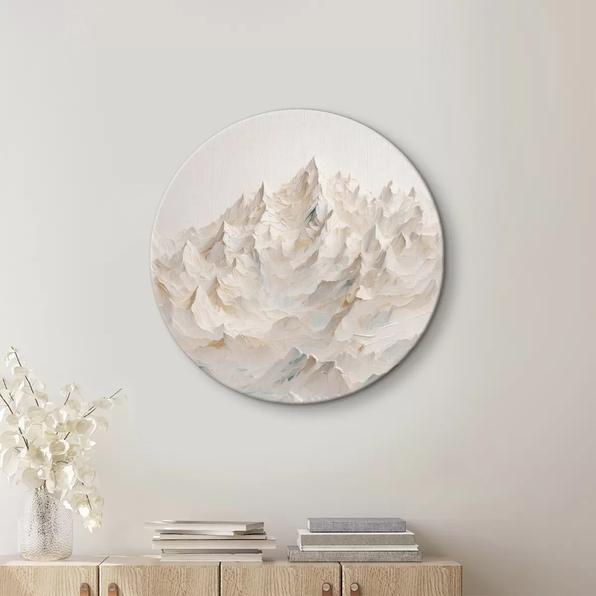 Okrągły obraz Białe góry na białym tle Nr r40621