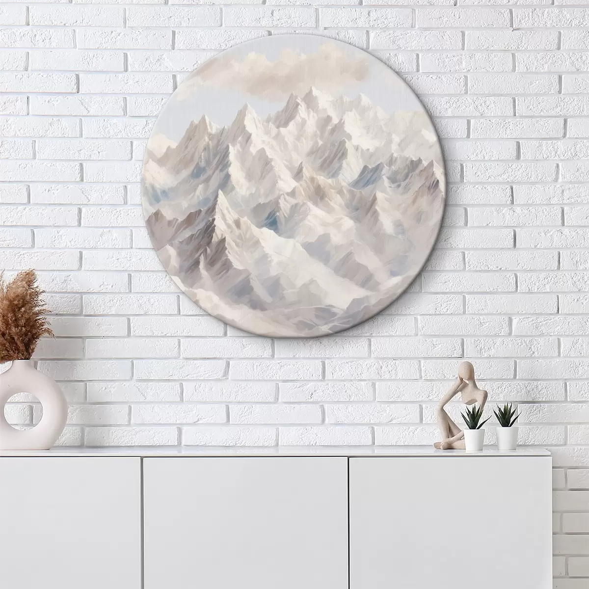 Okrągły obraz Białe góry na tle czystego nieba Nr r40630