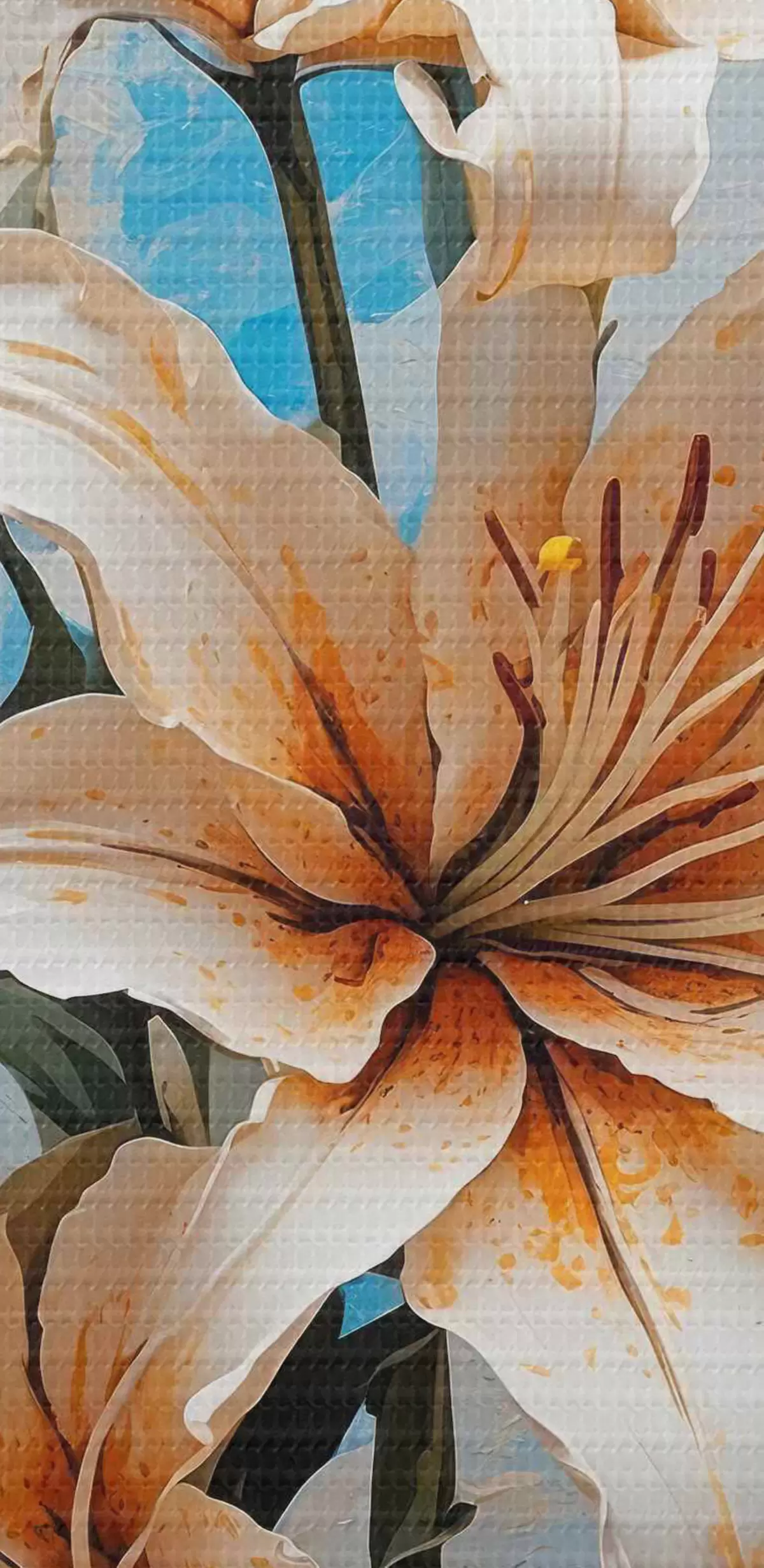 Okrągły obraz Lilie na abstrakcyjnym niebieskim i białym tle Nr r40640