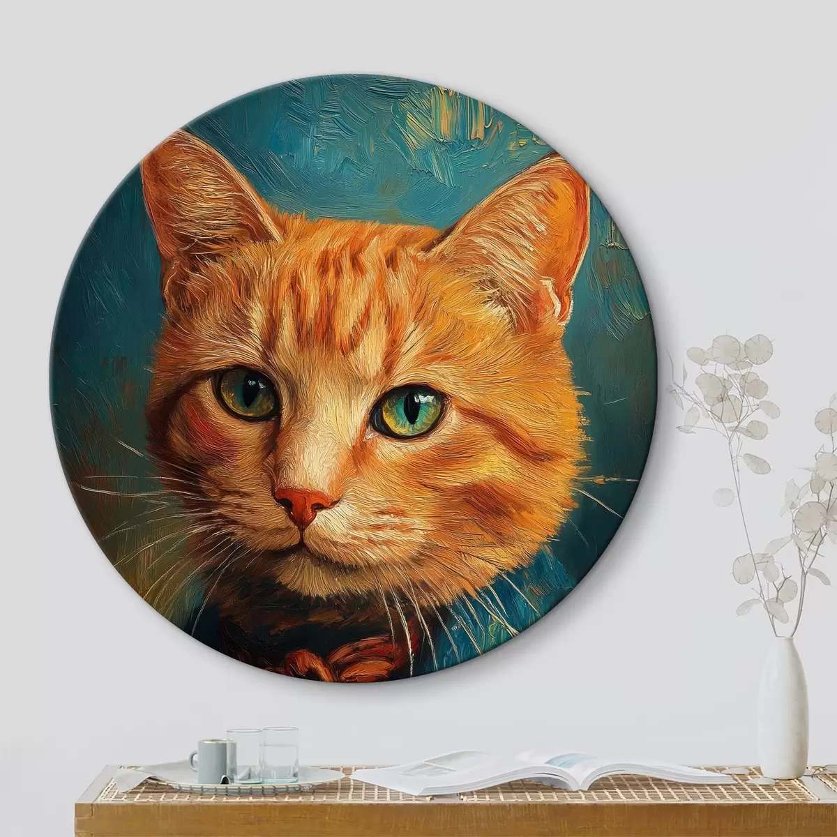 Okrągły obraz Rudy kot w garniturze w stylu portretu Van Gogha Nr r40647