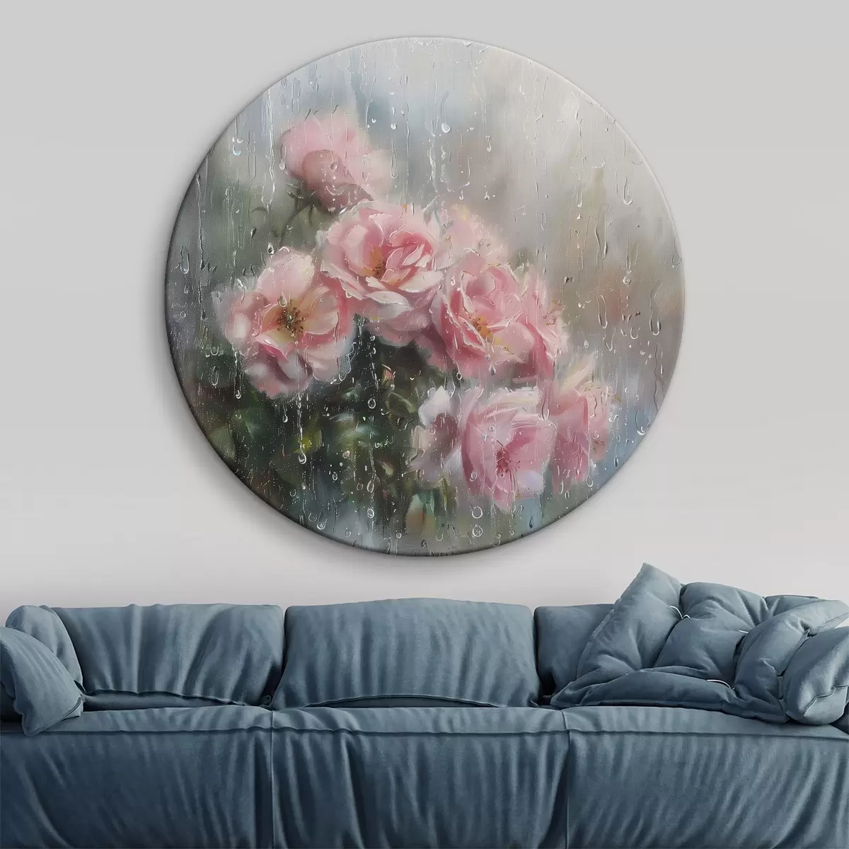Okrągły obraz Bukiet różowych róż za oknem w deszczową pogodę Nr r40656