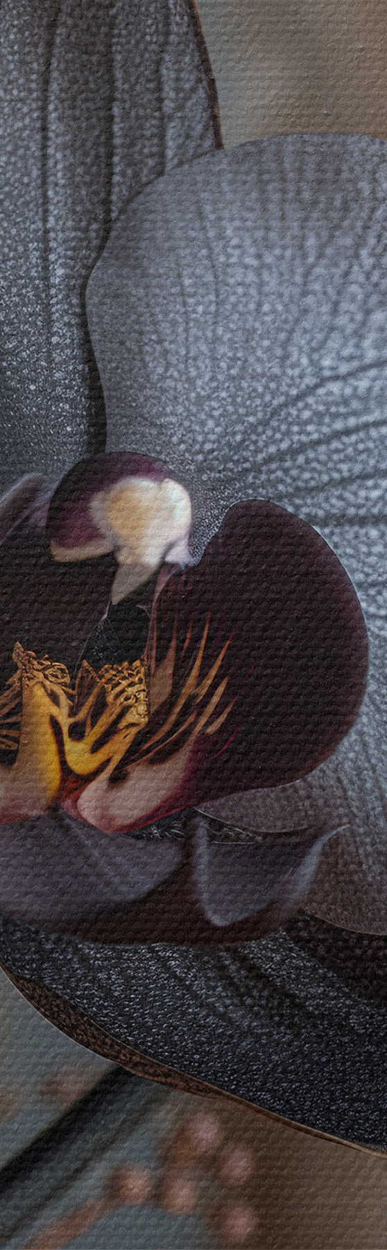 Okrągły obraz Elegancka kompozycja kwiatowa z czarną orchideą i innymi suszonymi kwiatami Nr r40661