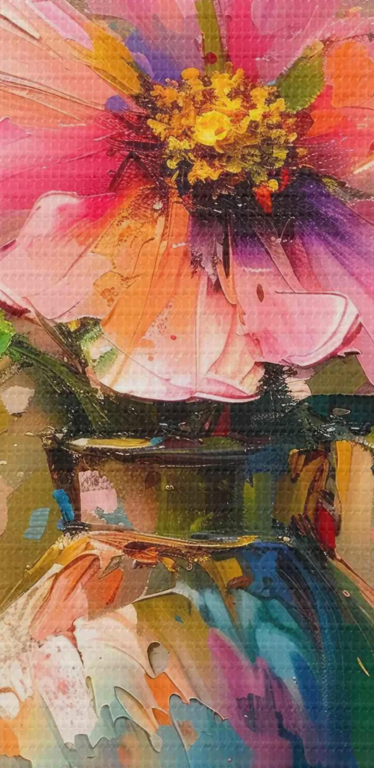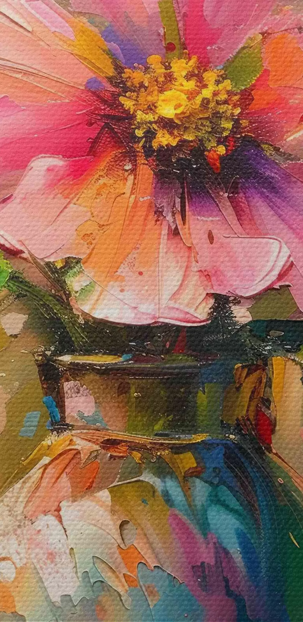Okrągły obraz Kolorowy kwiat w wazonie z dużymi pociągnięciami farby olejnej Nr r40664